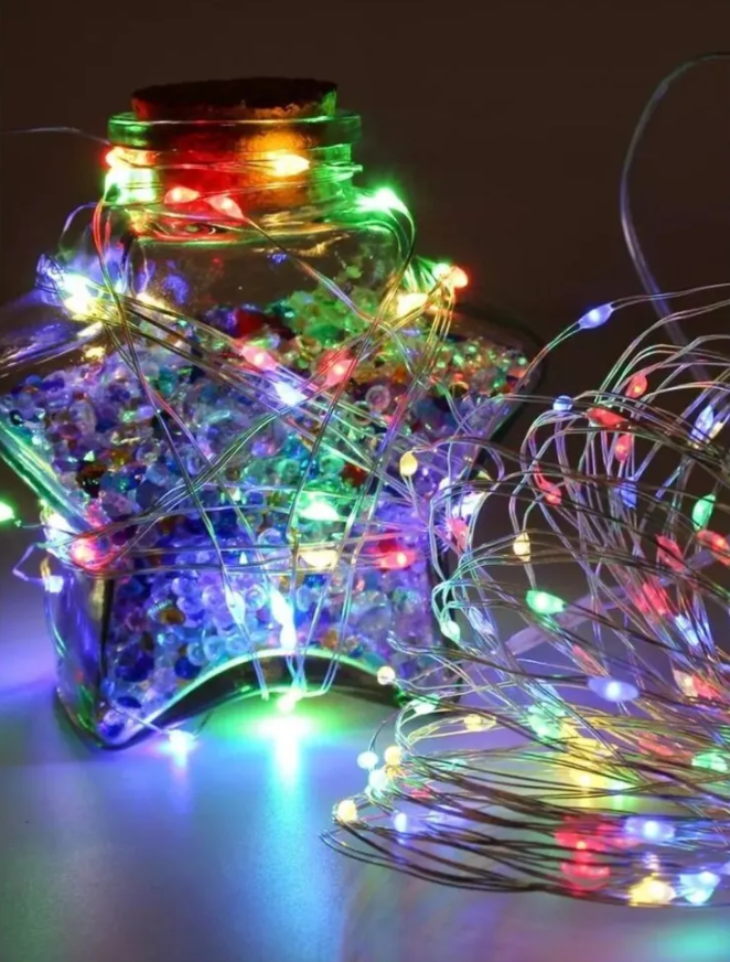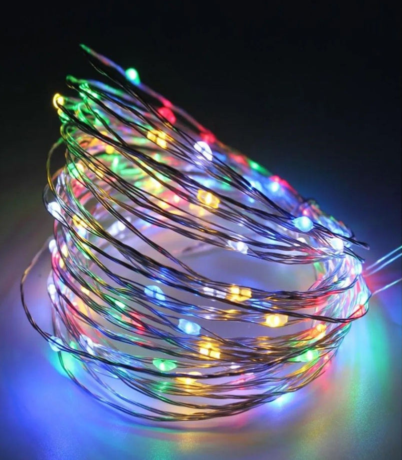Гирлянда Роса 100 метров, с пультом управления, светодиодная, питание от сети, серебристый провод, разноцветный свет интересное: