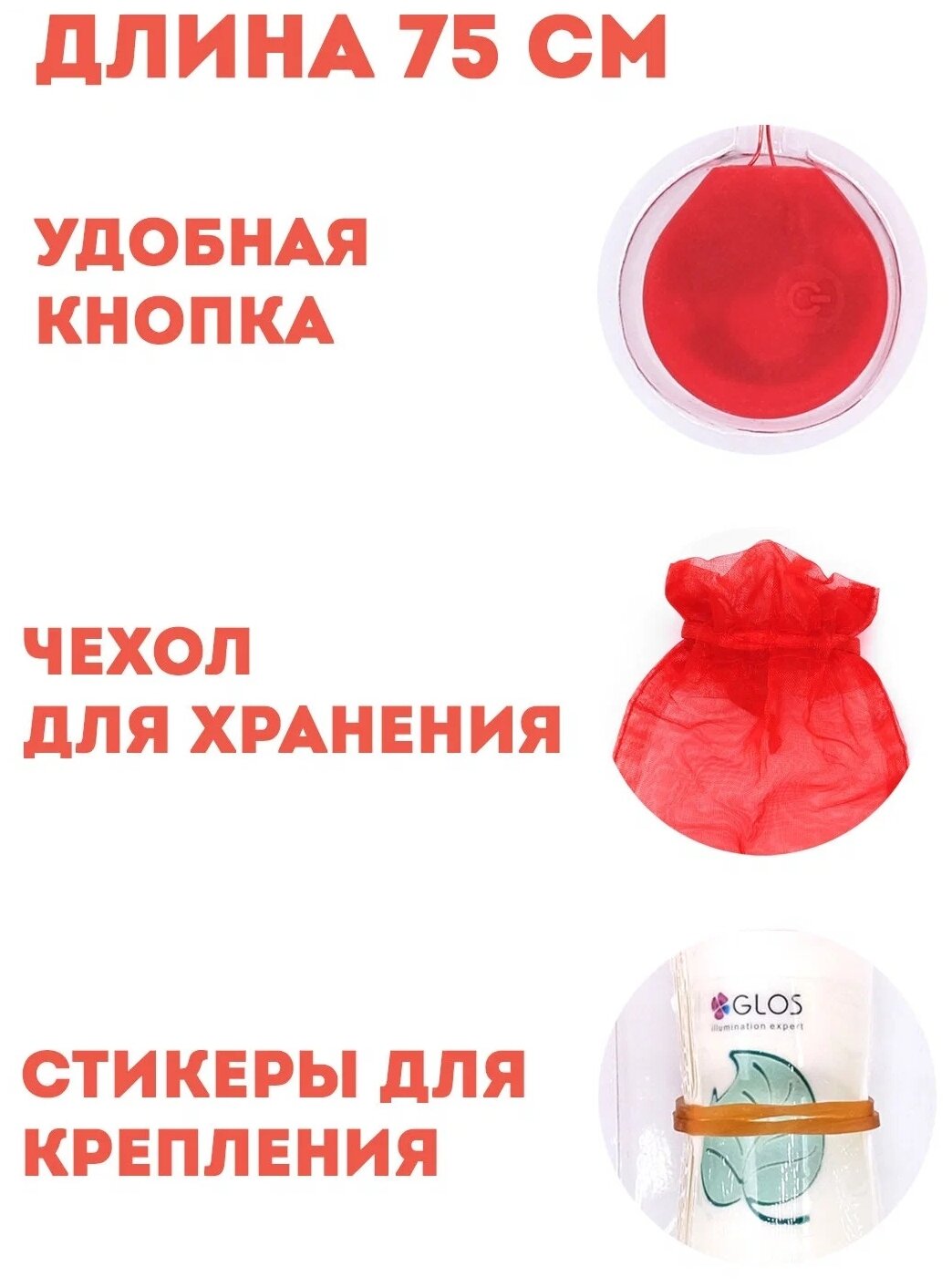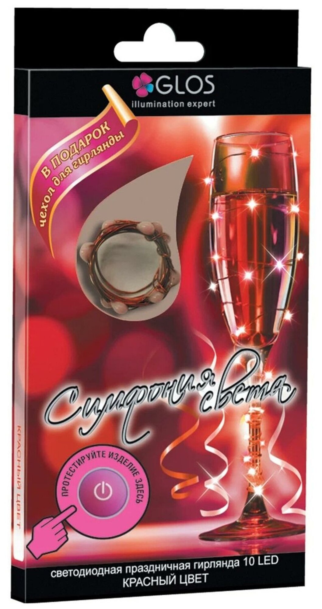 Электрогирлянда GLOS роса Симфония света, 0.75 м, 10 ламп, красный/красный провод интересное: