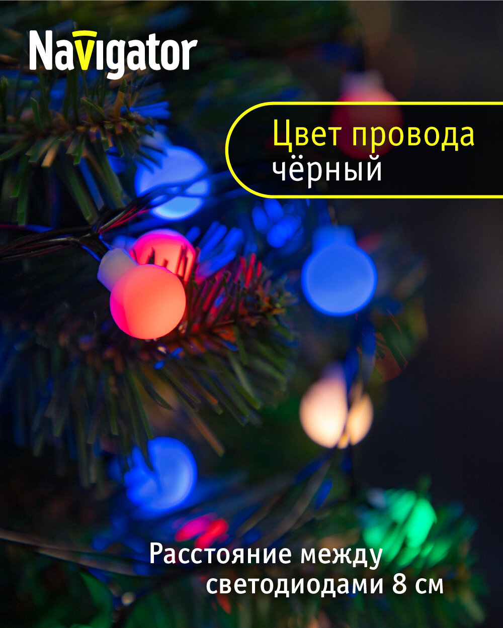 Гирлянда Navigator 61 835 разноцветные жемчужные шарики, 7.9 м, IP20