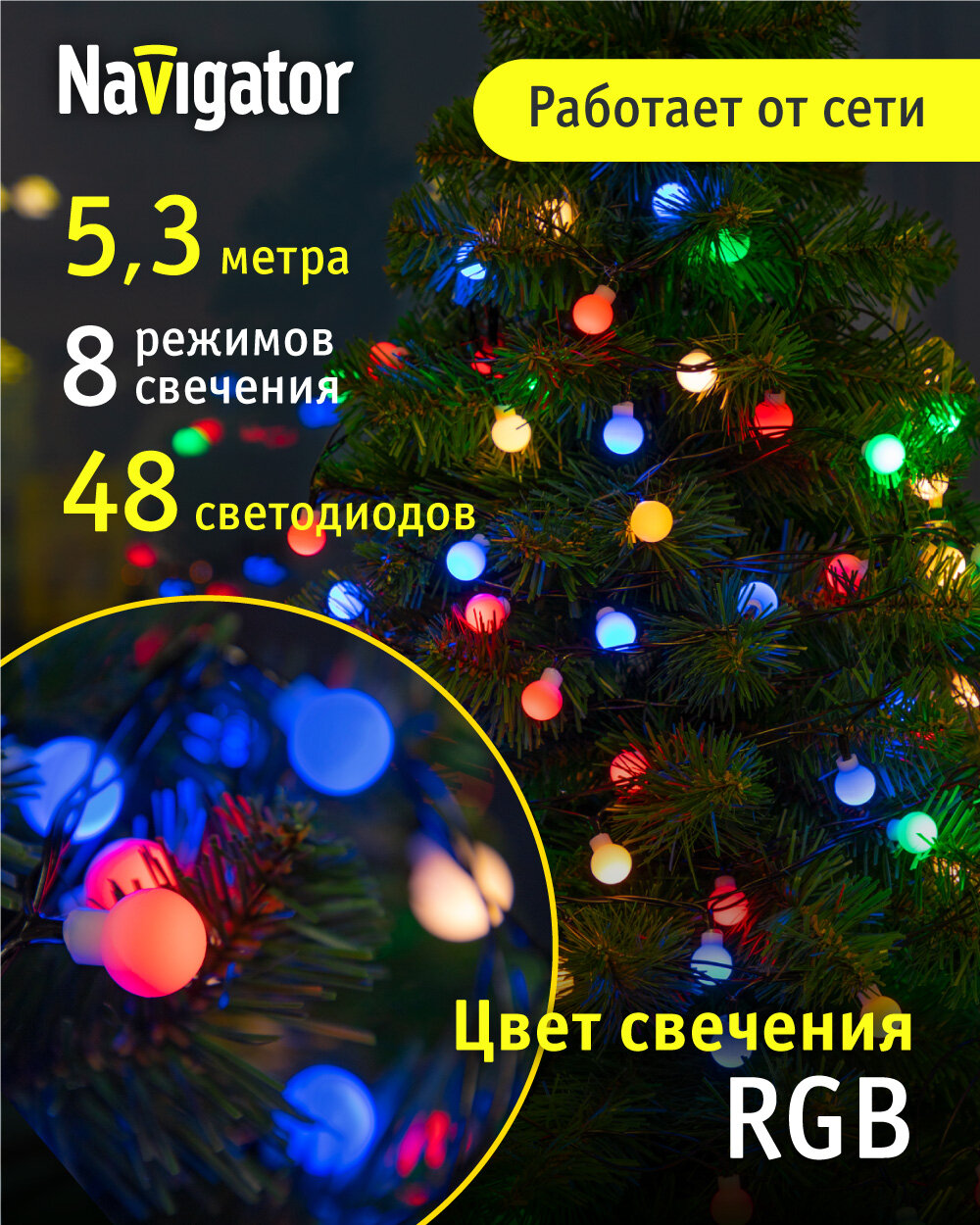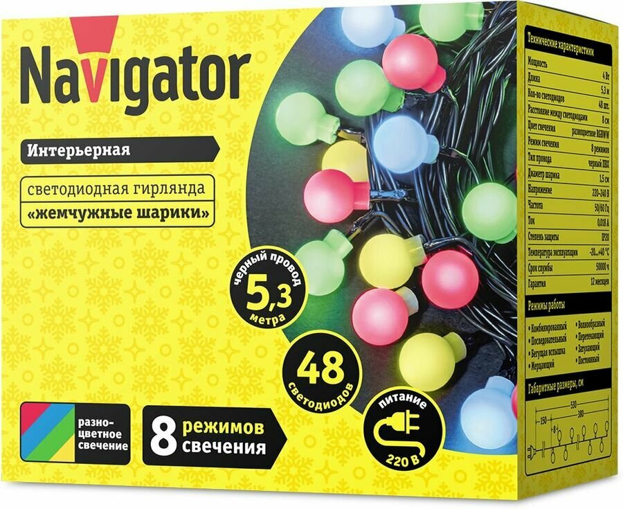 Гирлянда Navigator 61 834 разноцветные жемчужные шарики, 5.3 м, IP20 интересное: