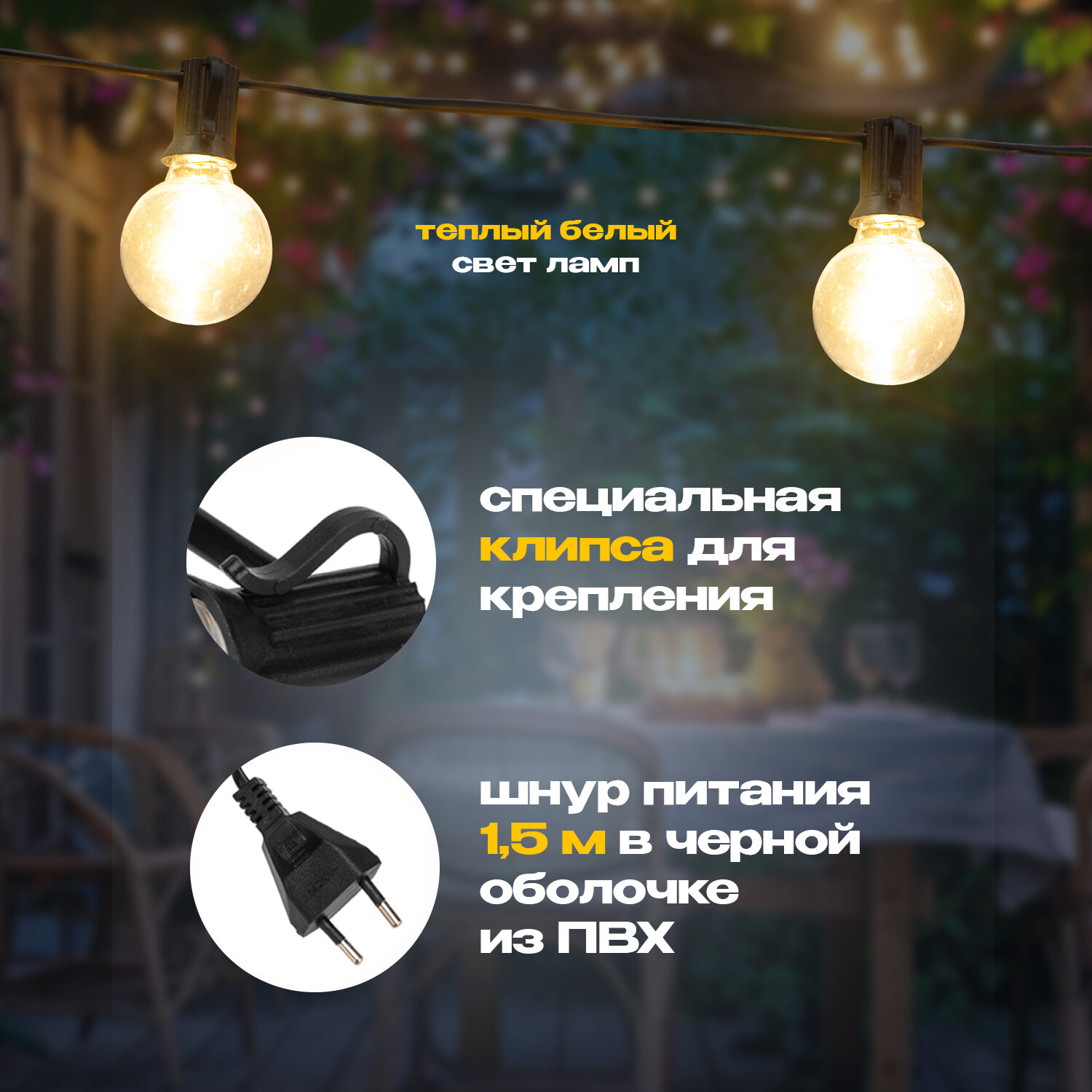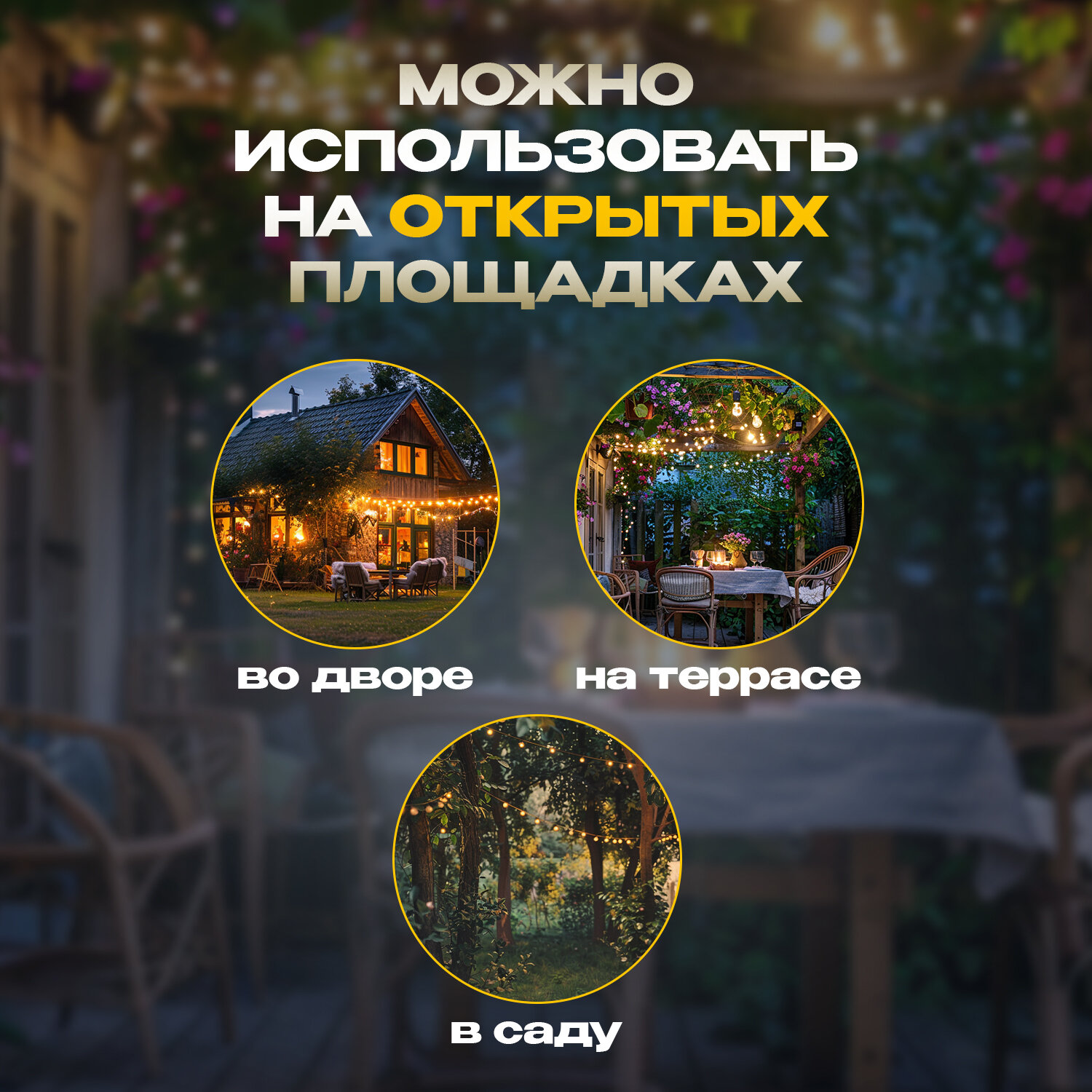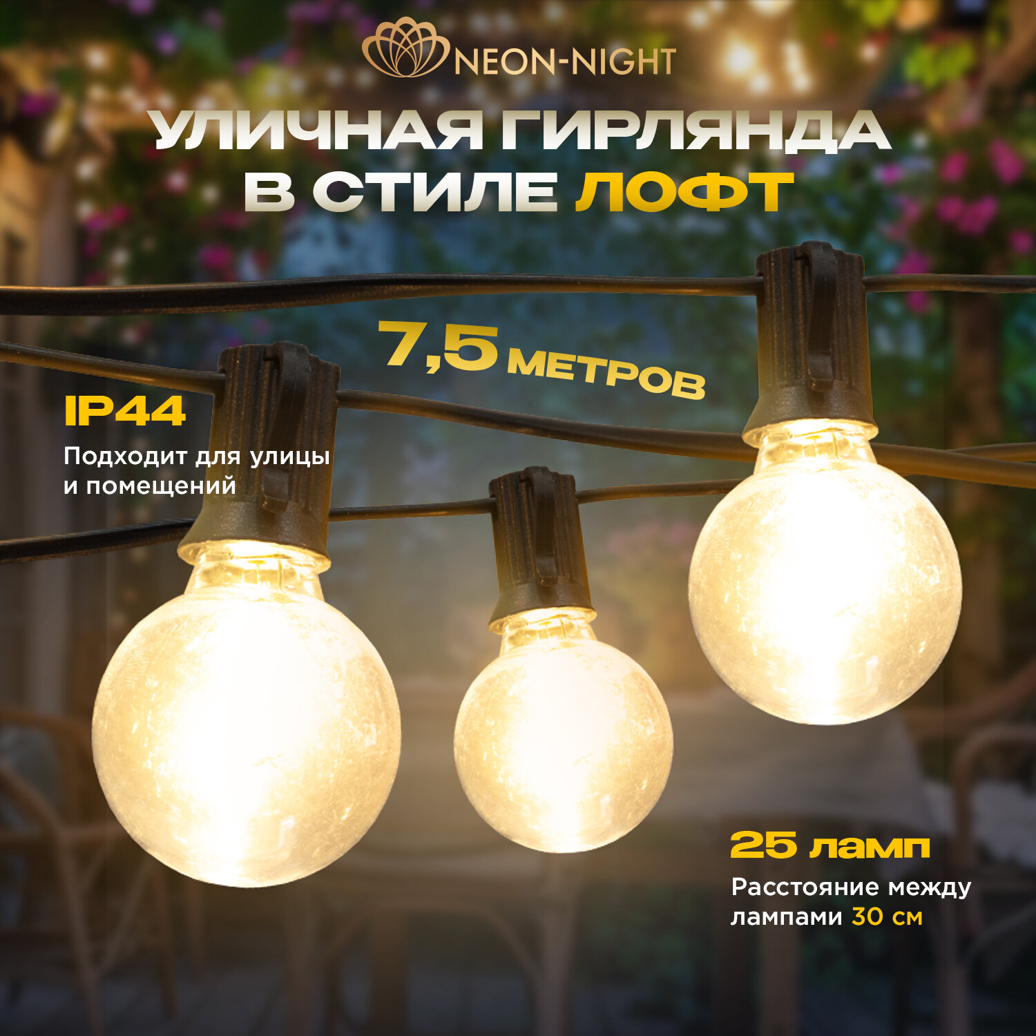 Уличная гирлянда Лофт Neon-Night 7,5м, 25 прозрачных ламп, влагостойкость IP44, теплый белый интересное:
