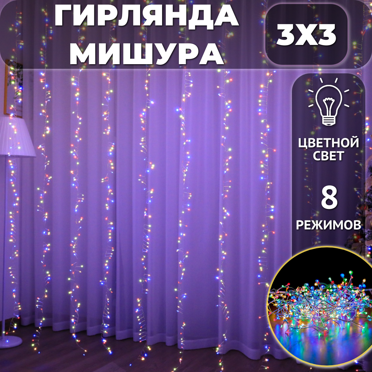Гирлянда штора Мишура/Хвойная лапа 3х3, питание от сети, светодиодная, разноцветный интересное: