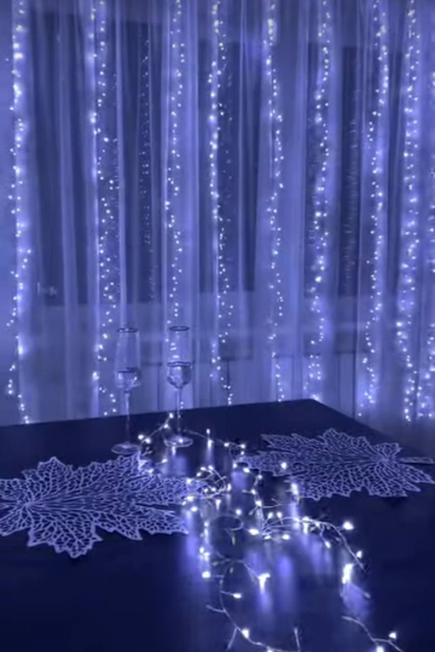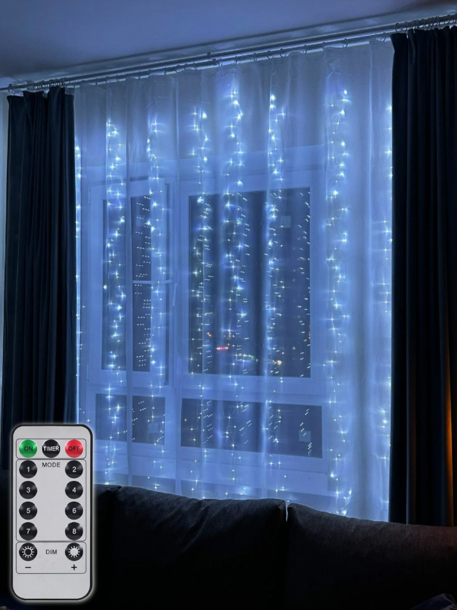Гирлянда штора Мишура/Хвойная лапа 3х3 С пультом, питание от сети, светодиодная, белый интересное: