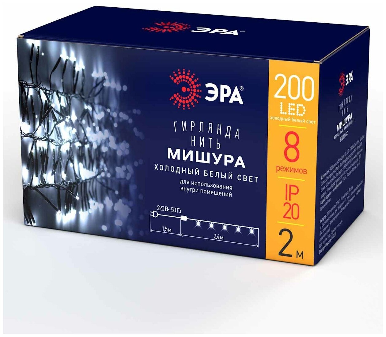Купить Гирлянда светодиодная нить ENIN-GC ЭРА холодный свет от сети 3,9 м, 200 LED