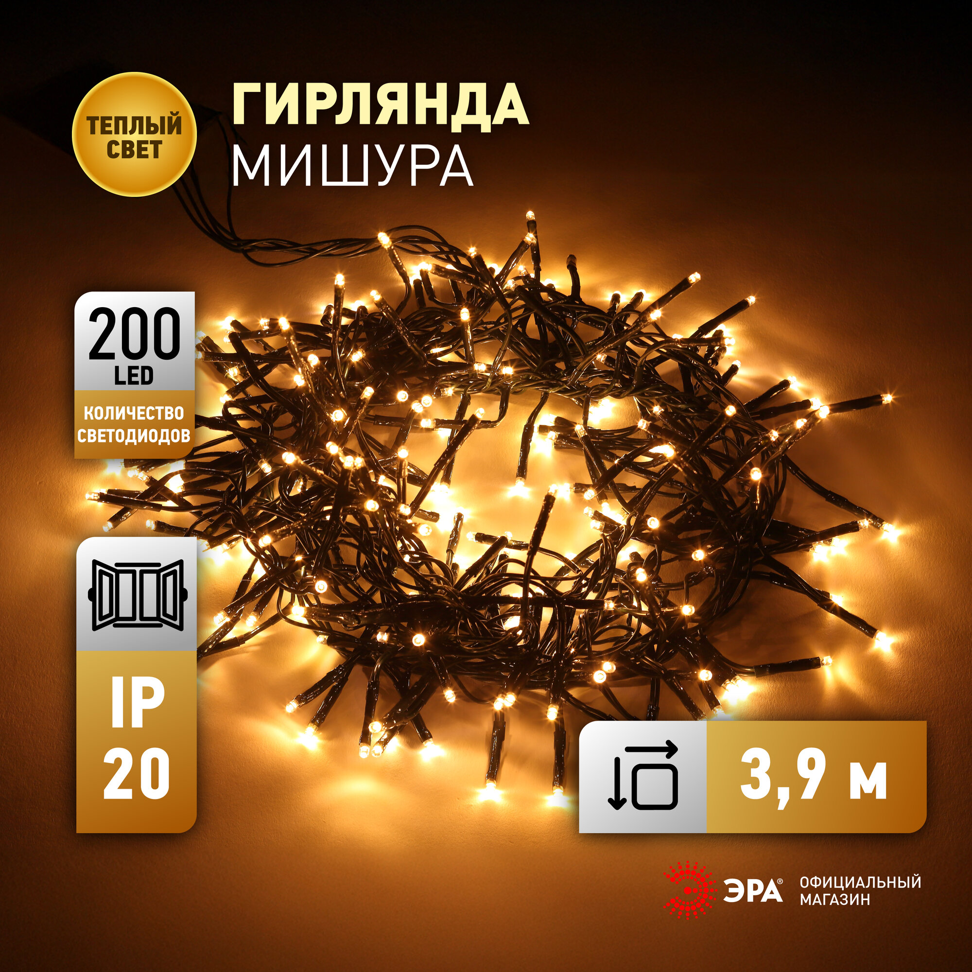 Гирлянда светодиодная нить ENIN-GW ЭРА теплый свет от сети 3,9 м, 200 LED интересное: