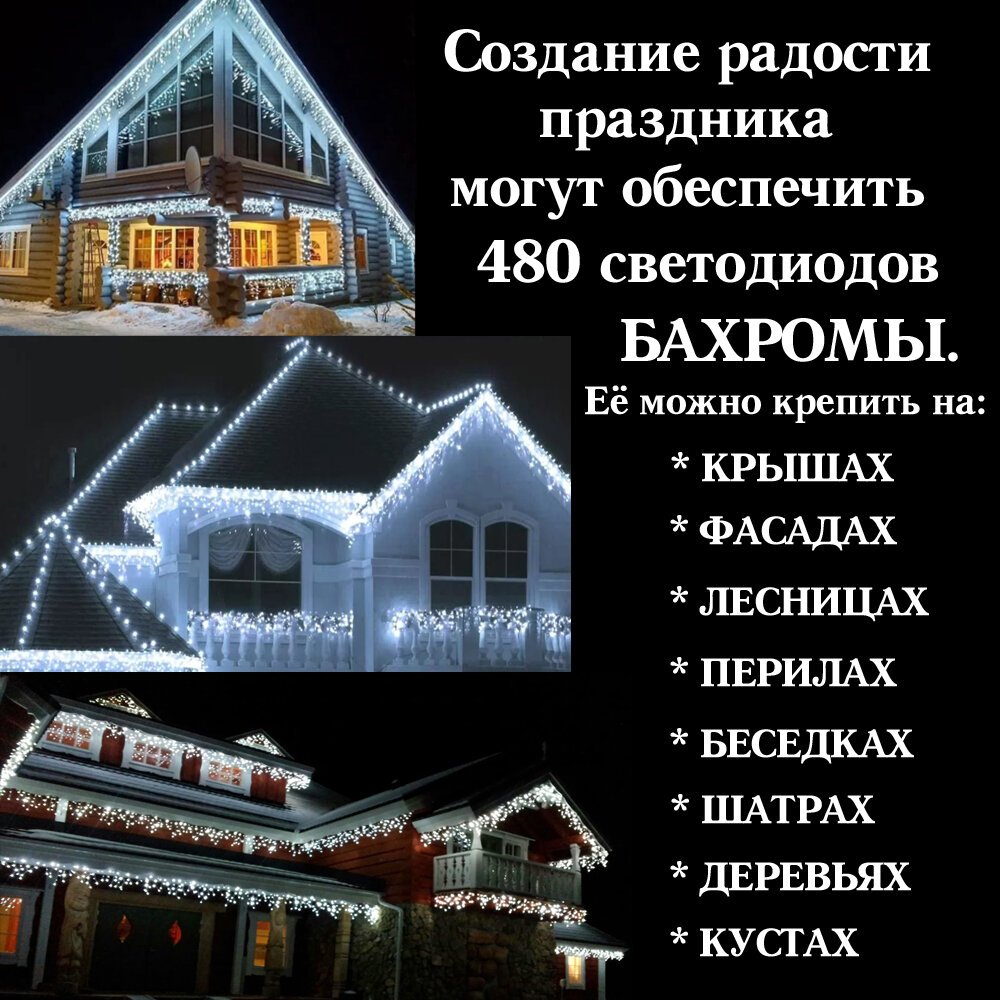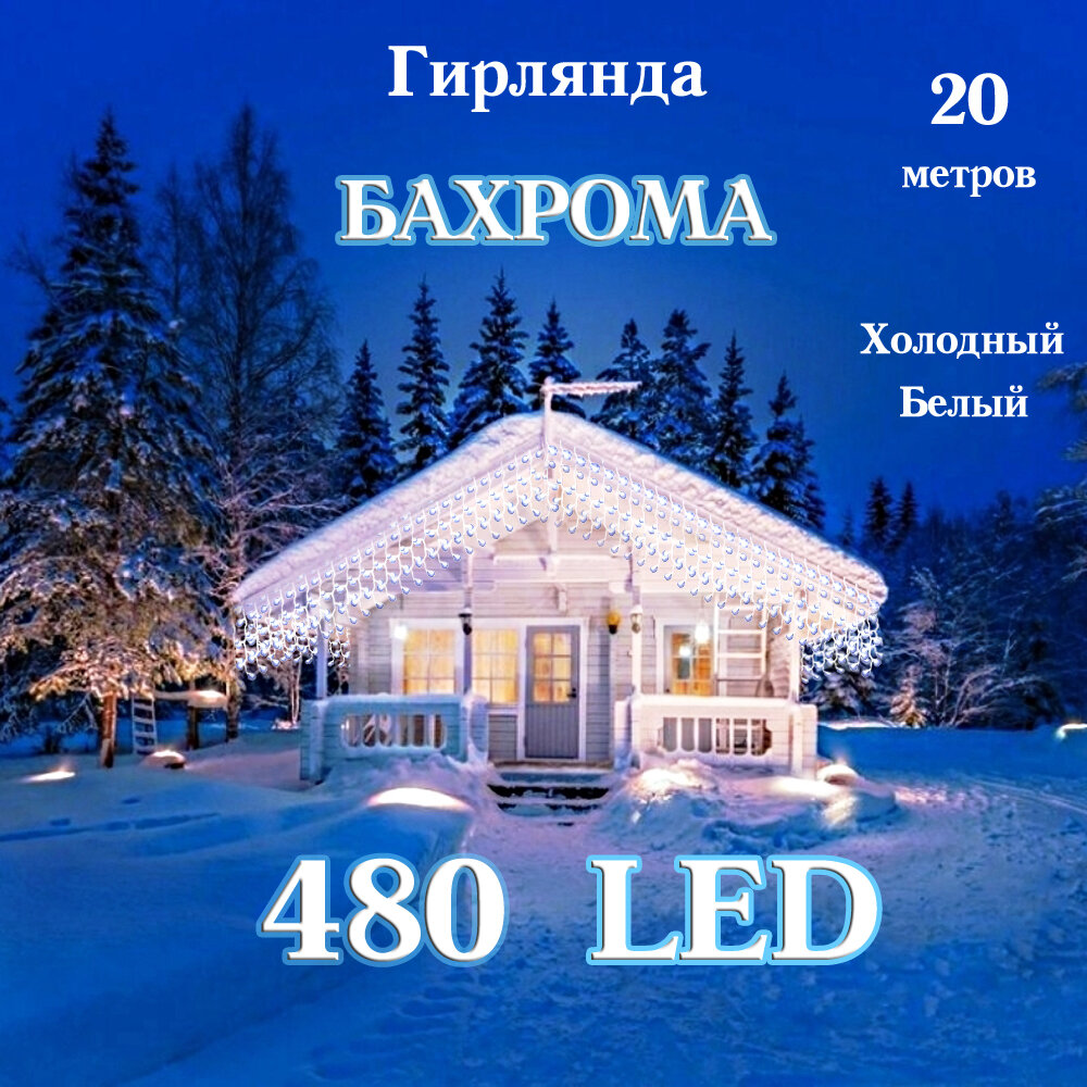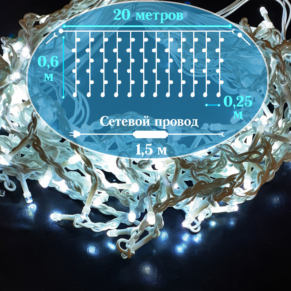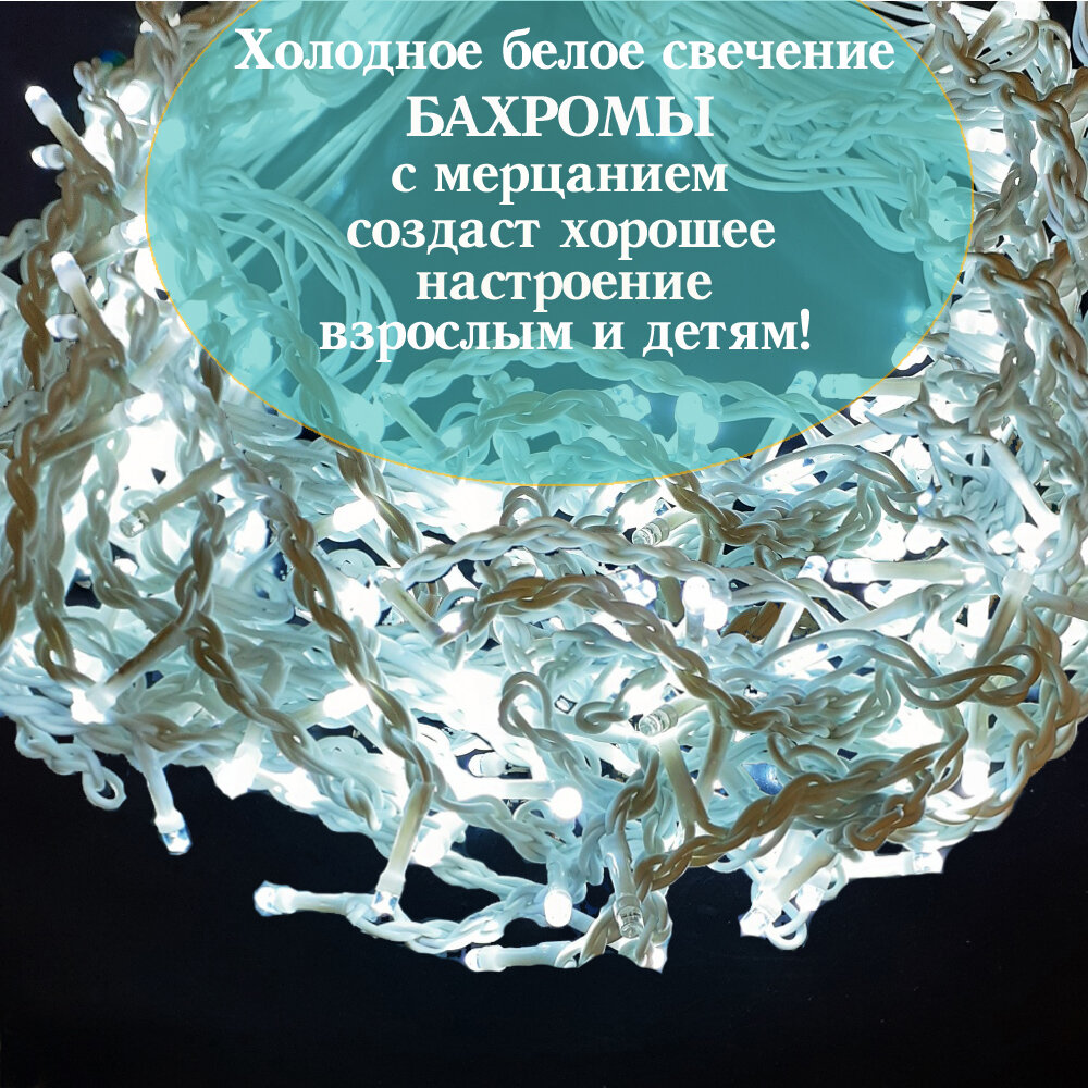 Уличная светодиодная бахрома 20х0,6 метра, холодная белая интересное: