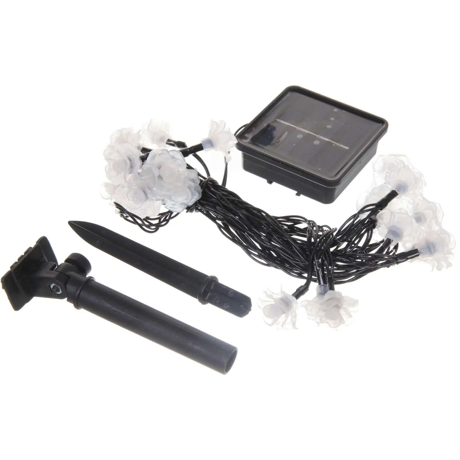 Гирлянда для улицы «Нежный цветок» 3 м 20 ламп LED чёрный провод, 2 реж, IP-55, Теплый белый (солнечная батарея)