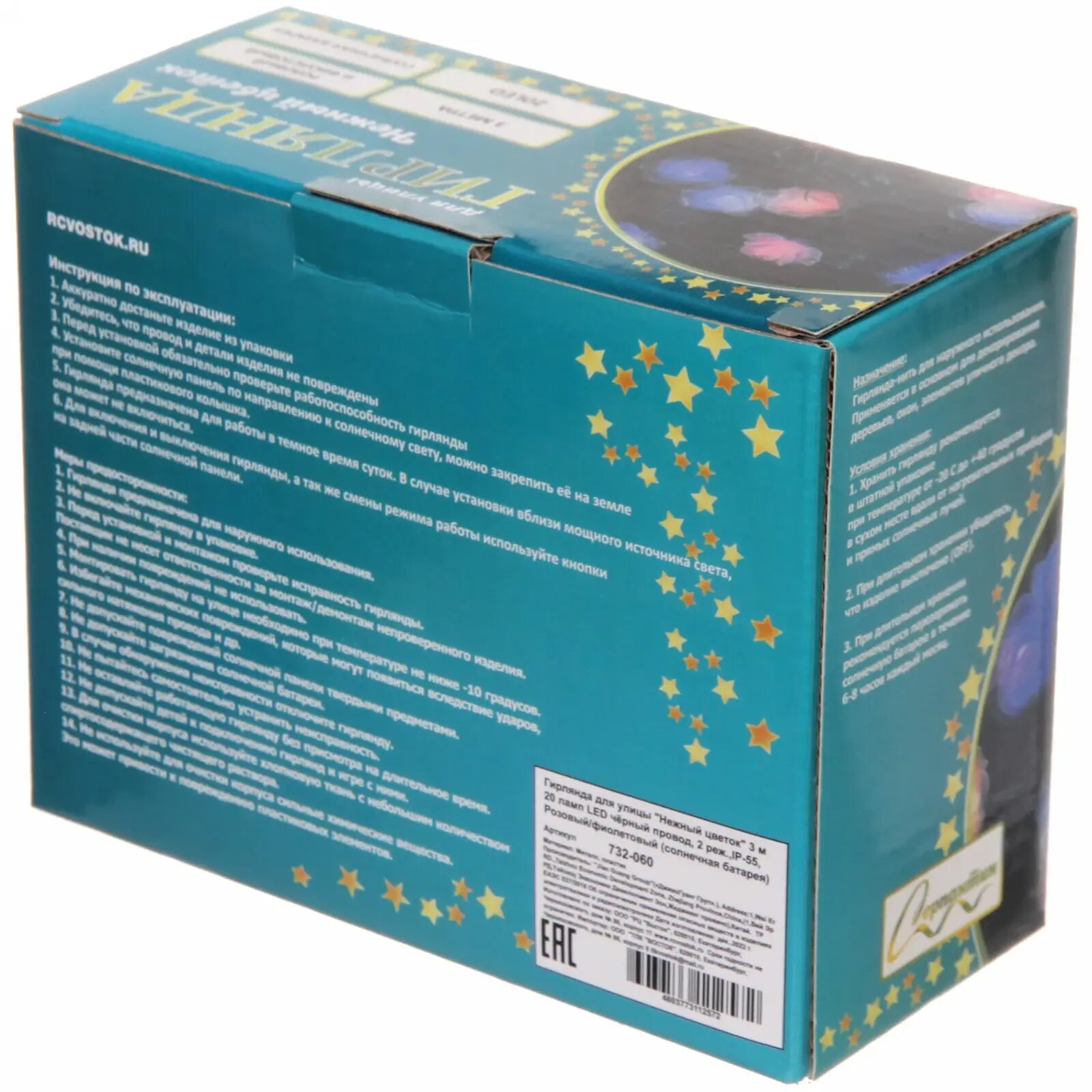 СохранитьГирлянда для улицы «Нежный цветок» 3 м 20 ламп LED чёрный провод, 2 реж, IP-55, Розовый/фиолетовый (солнечная батарея) интересное: