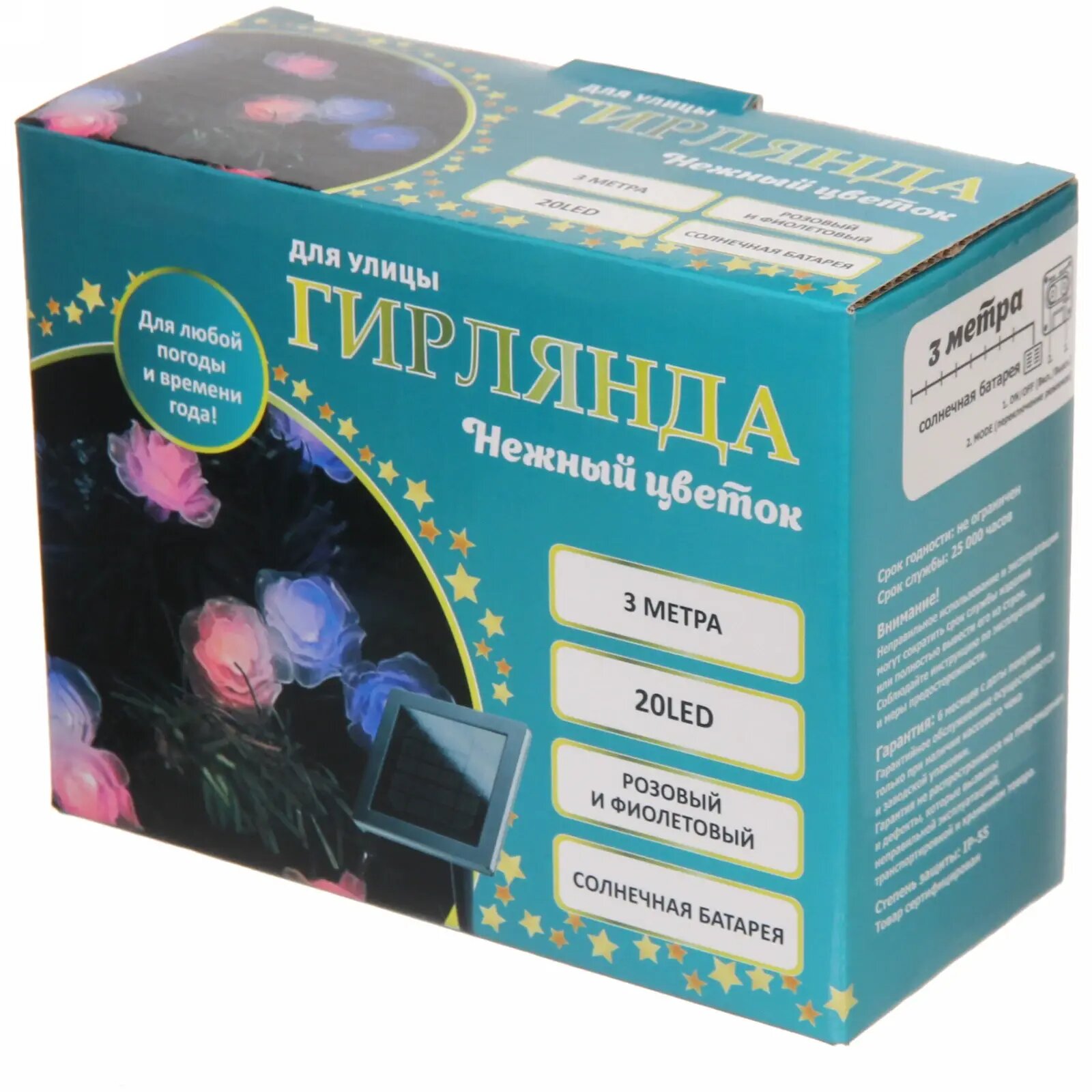 Купить Гирлянда для улицы «Нежный цветок» 3 м 20 ламп LED чёрный провод, 2 реж, IP-55, Розовый/фиолетовый (солнечная батарея)