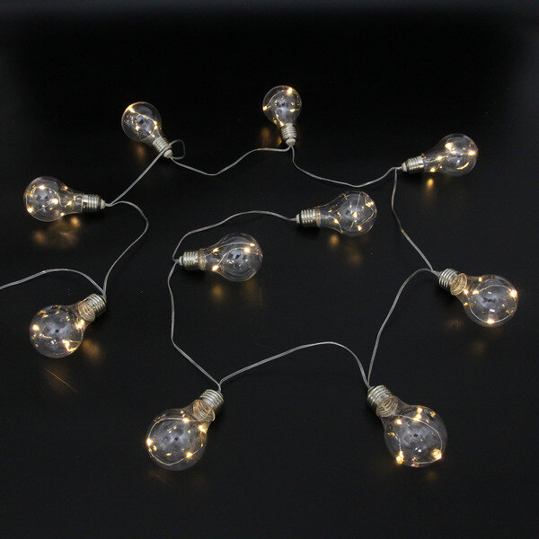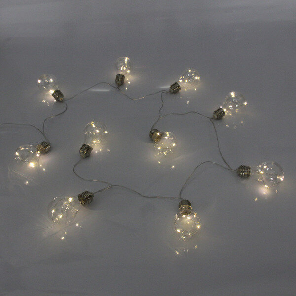 Гирлянда для улицы «Солнечный виток» 4 м 10 ламп LED (4*5 см) чёрн. пров, 2 реж, IP-54, Теплый белый (солнечная батарея)