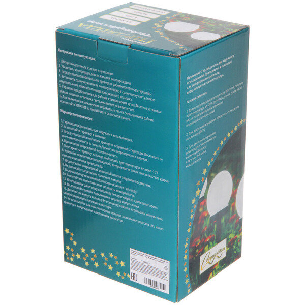 СохранитьГирлянда для улицы «Светящийся шар» 3.5 м 6 ламп LED (d=5 см) чёрн. пров, 1 реж, IP-54, Белый (солнечная батарея) интересное: