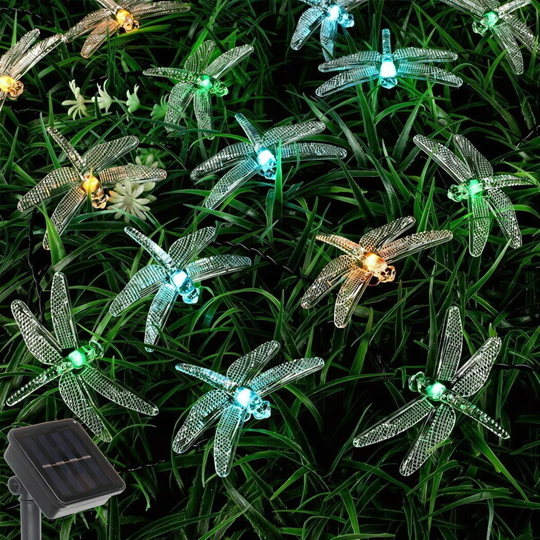 Купить Гирлянда для улицы «Стрекоза» 3 м 20 ламп LED чёрный провод, 2 реж, IP-55, Мультицвет (солнечная батарея)