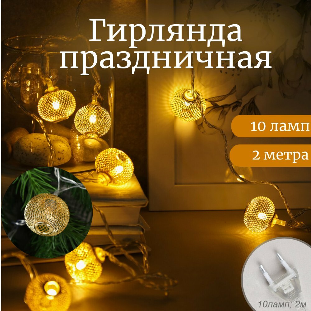 Гирлянда светодиодная новогодняя "2м 10LED Шарики" интересное: