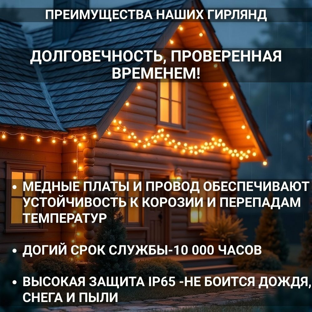 Гирлянда Роса 10м, питание от батареек АА, светодиодная