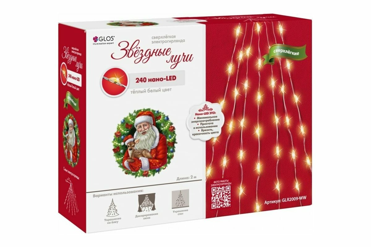 Ниже Вы можете прочитать отзывы на Электрогирлянда GLOS 'Звездные лучи', 240 тёплых белых нанодиодов GLR2009-WW, ознакомится с подробными характеристиками, посмотреть интересные обзоры и фотографии на Электрогирлянда GLOS 'Звездные лучи', 240 тёплых белых нанодиодов GLR2009-WW.