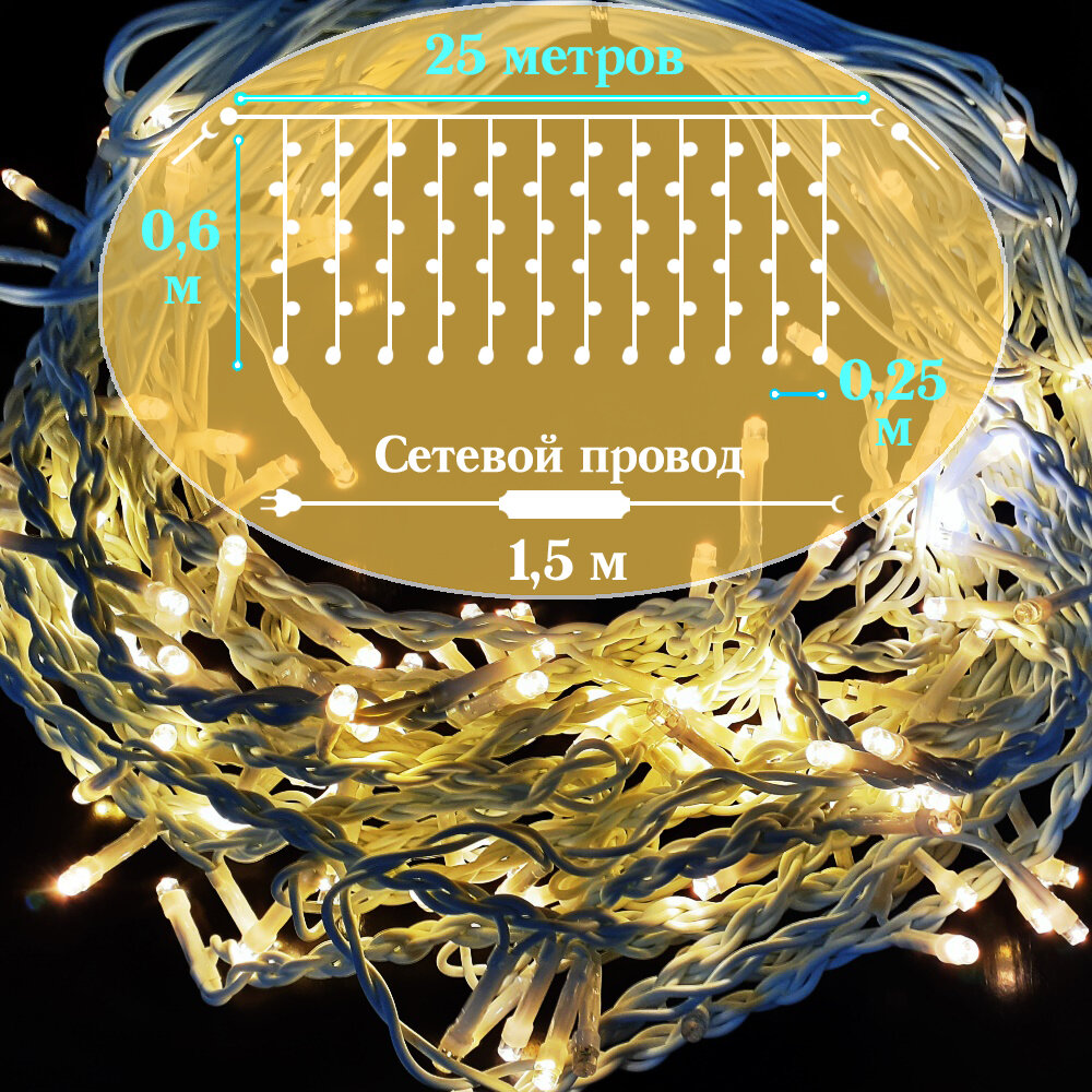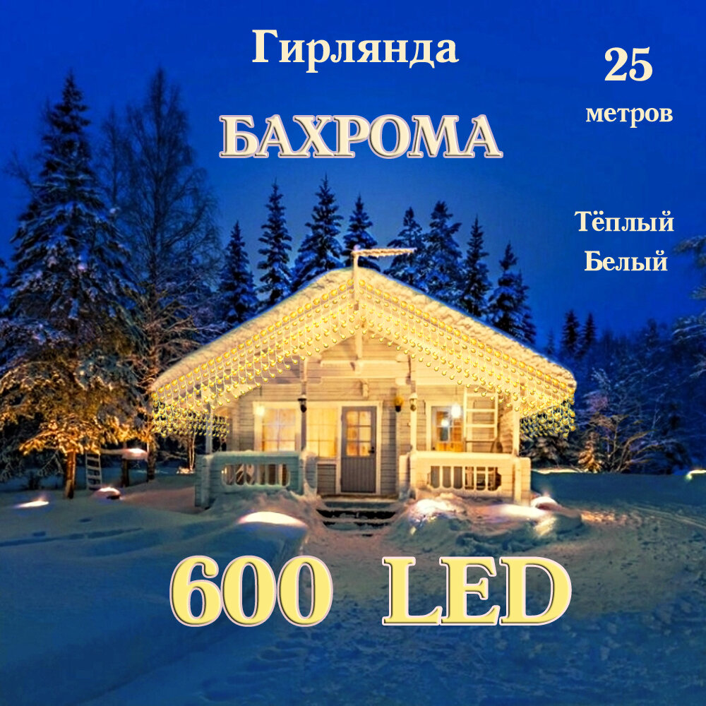Уличная светодиодная бахрома 25х0,6 метра, теплая белая интересное:
