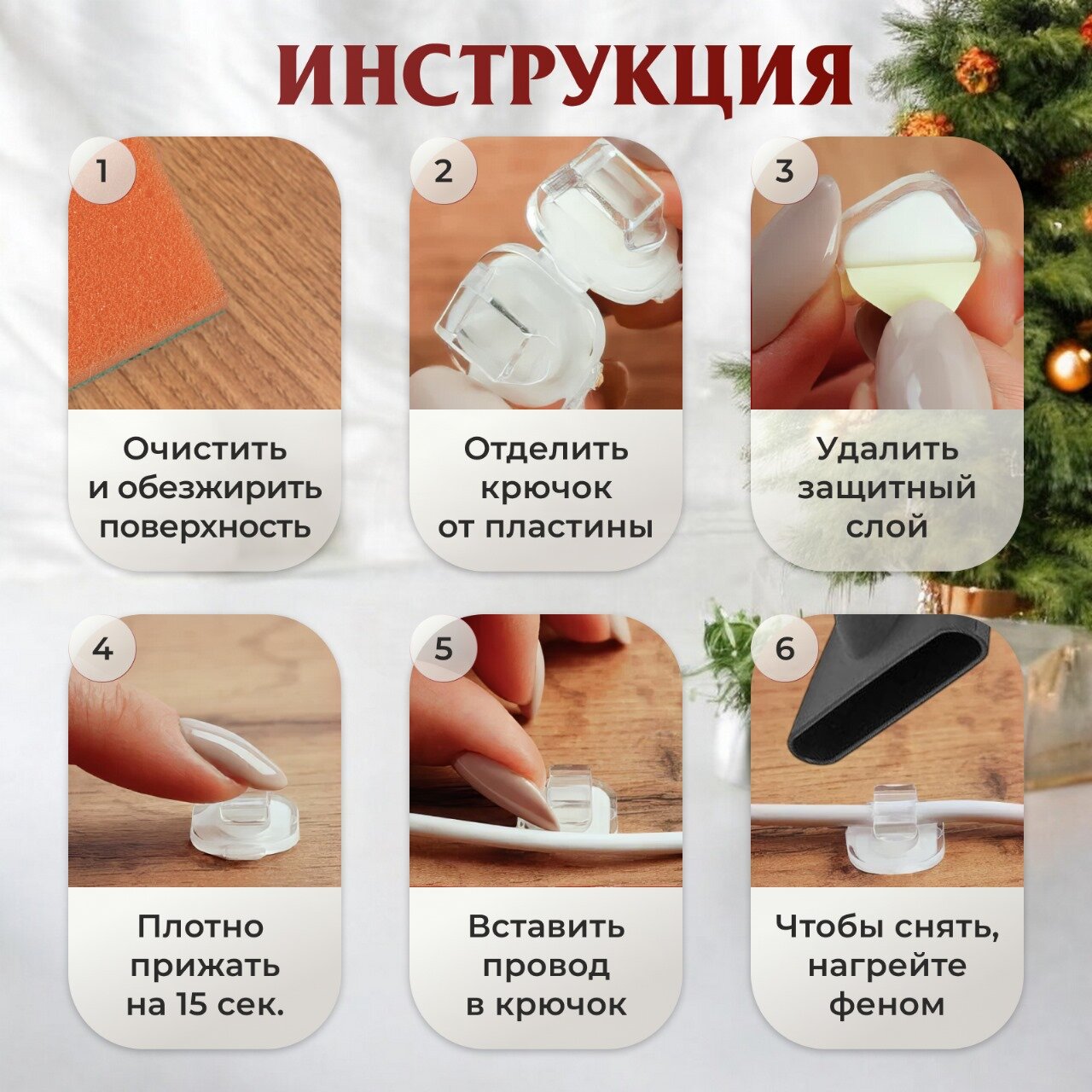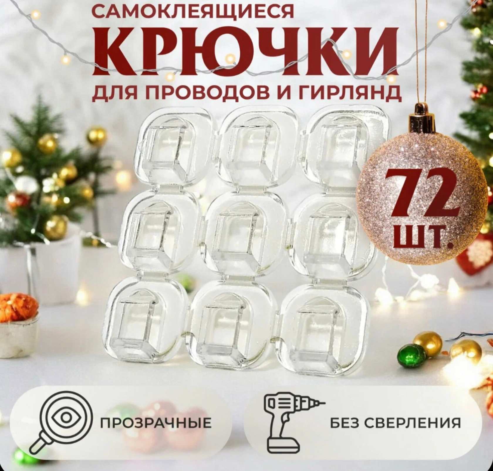 Крючки прозрачные, самоклеящиеся, для проводов и гирлянд, 72шт. интересное: