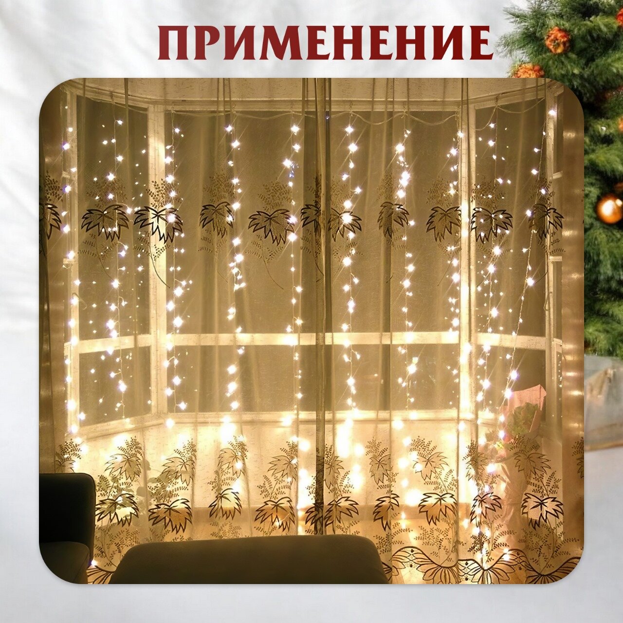 Гирлянда "Нить" 4 м с насадками "Звёздочка", IP20, прозрачная нить, 20 LED, свечение тёплое белое, 8 режимов, 220 В