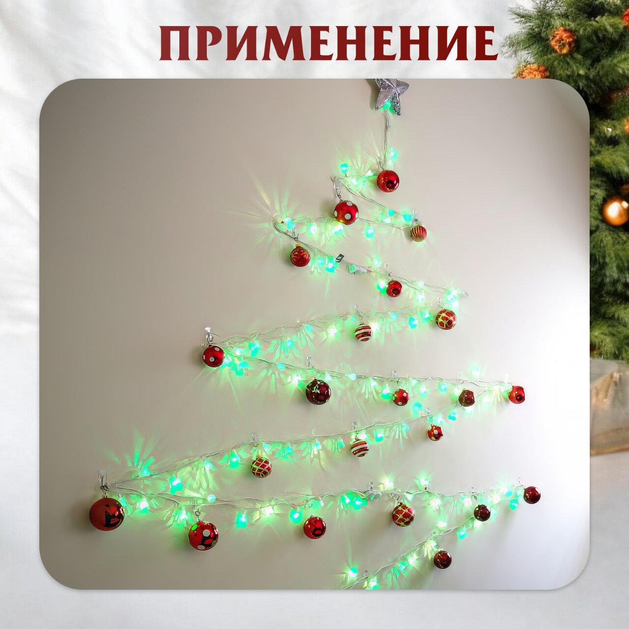 Гирлянда Роса 10м, питание от батареек АА, светодиодная
