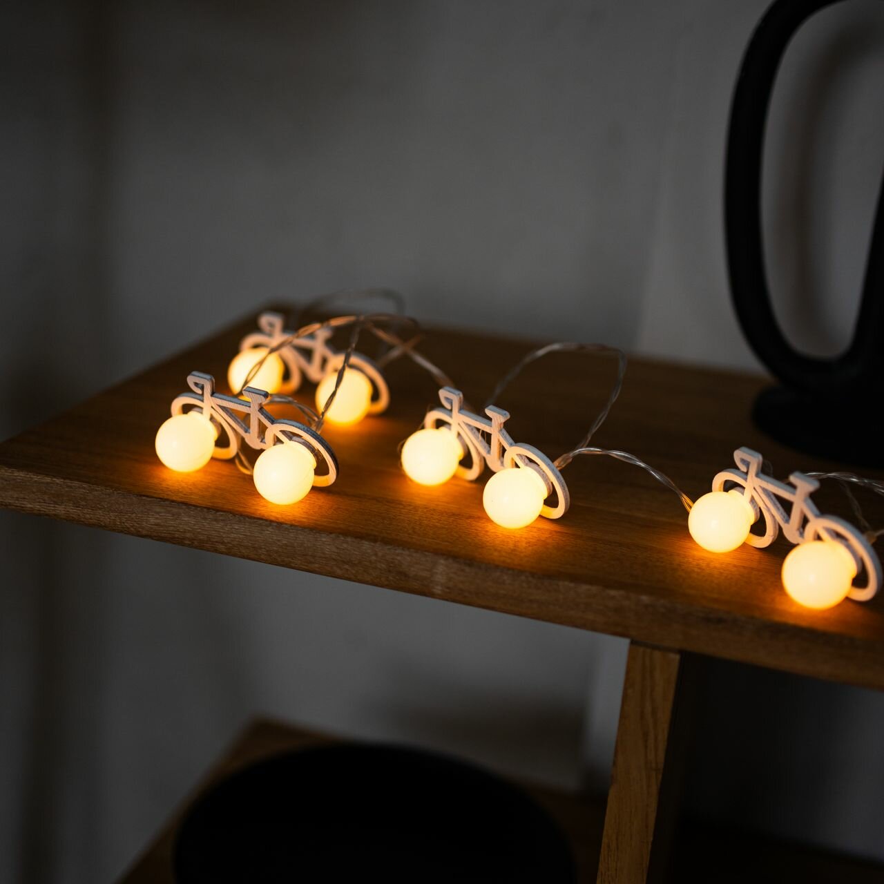 Гирлянда из дерева Elmarto Велосипеды, 2 м, 10 шт, 20 ламп, белая интересное: