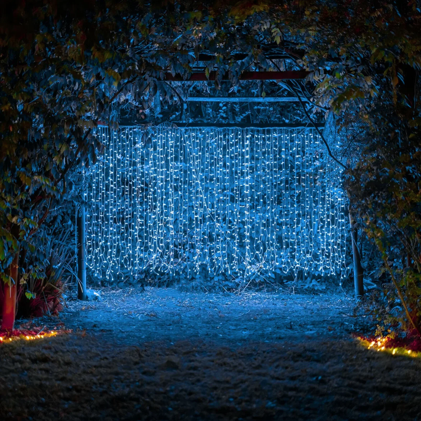 Гирлянда светодиодная-Занавес/штора на окно, 560 LED, синий, прозрачный провод (3.0 м х 3.0 м), 8 режимов, соединяемая