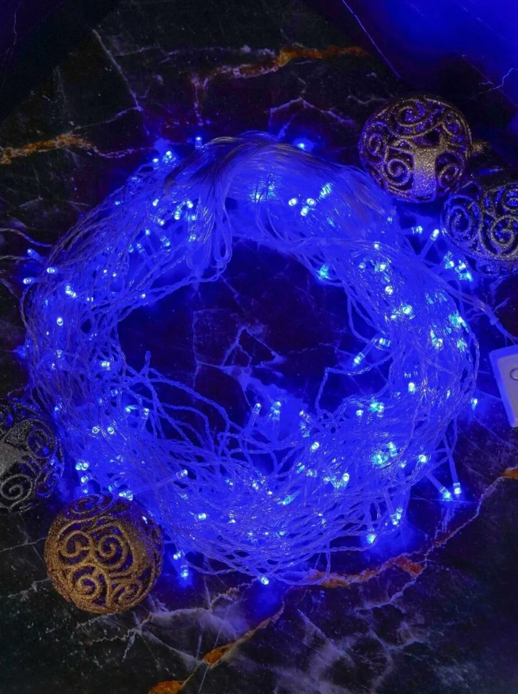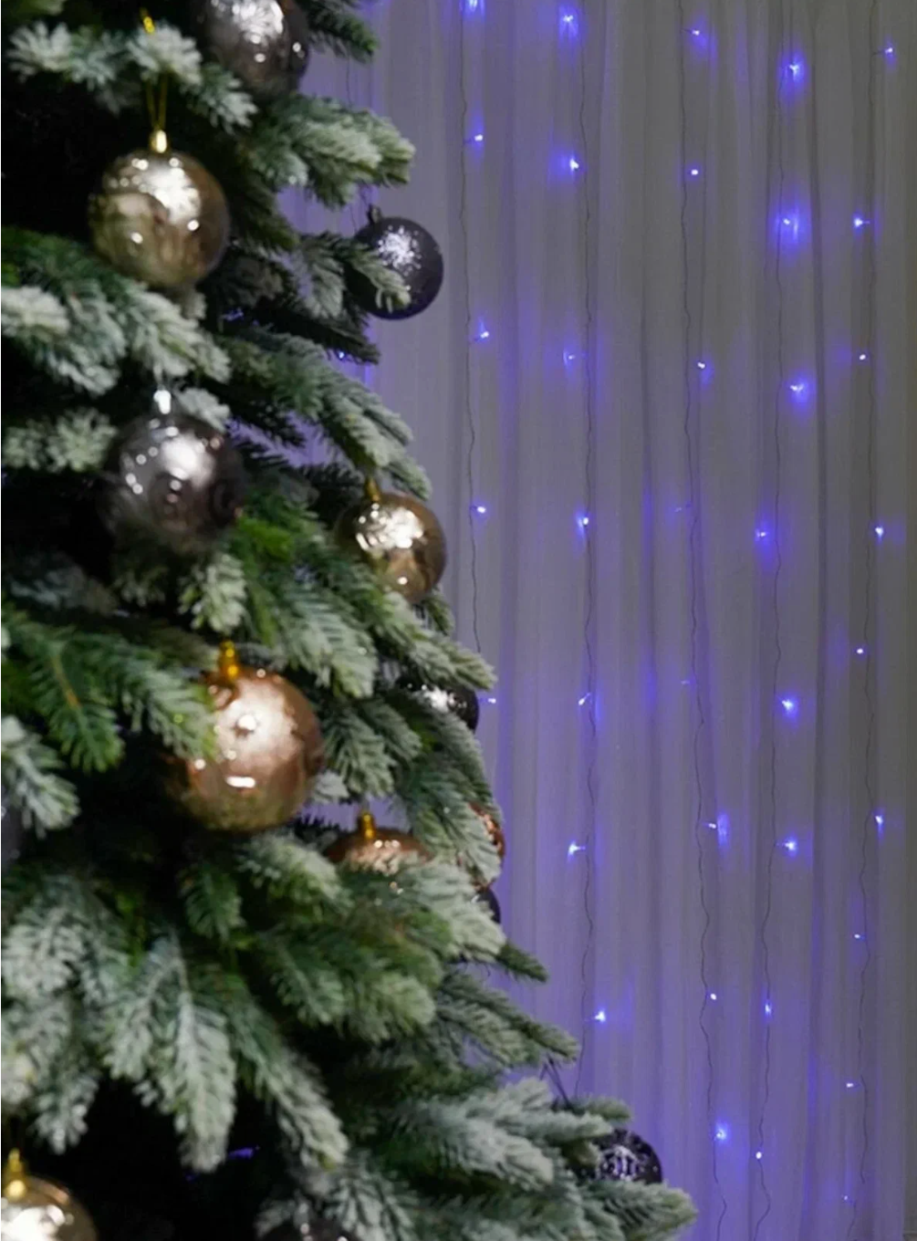 Гирлянда дождик 3 х 2 метра / Новогодняя штора / Занавес на окно / Гирлянда занавес / Гирлянда штора цвет: Синий