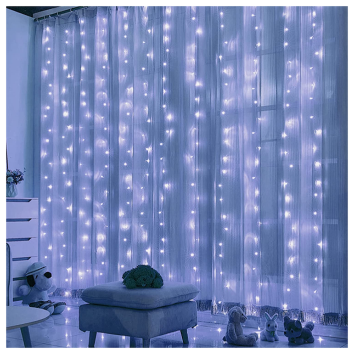 Гирлянда светодиодная-Занавес/штора на окно, 560 LED, синий, прозрачный провод (3.0 м х 3.0 м), 8 режимов, соединяемая