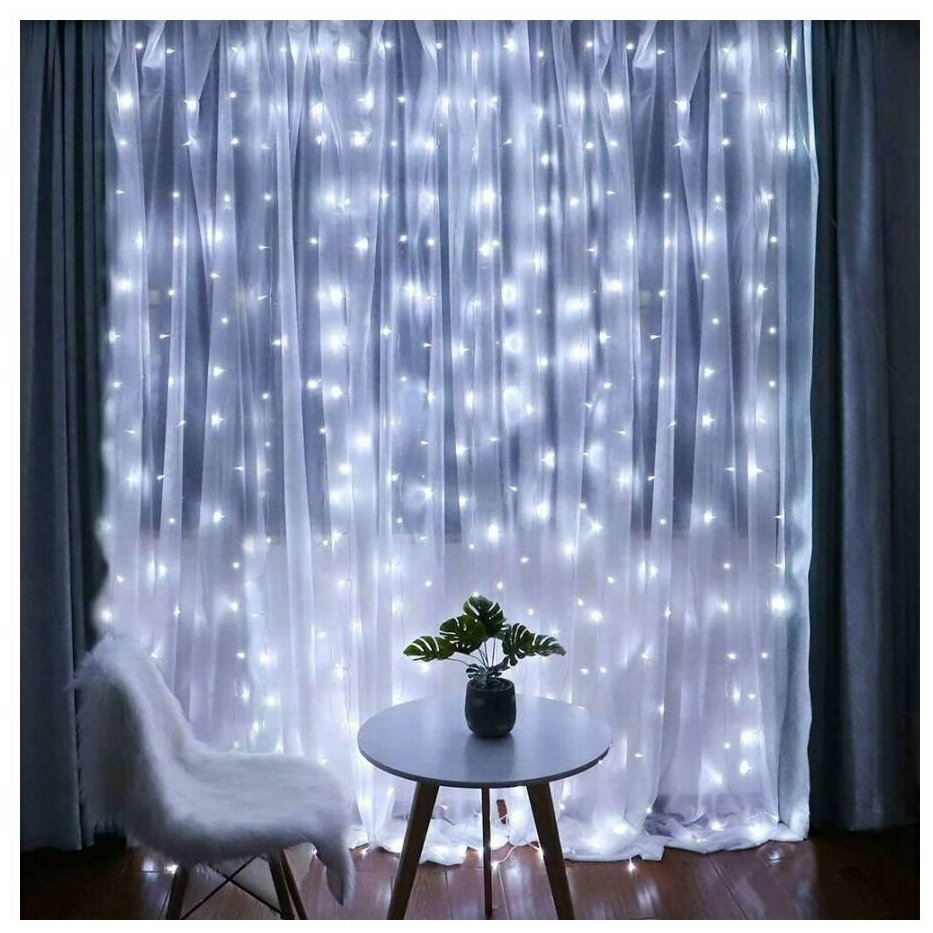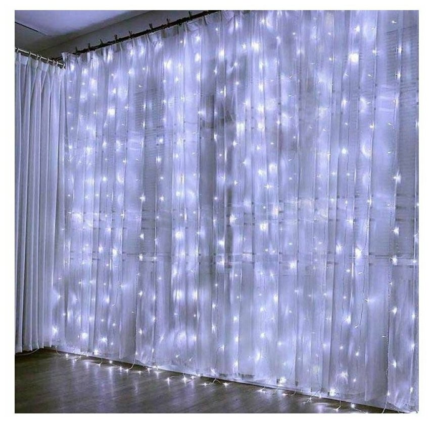 Электрогирлянда интерьерная Штора Светодиодная , 3x3 м, питание От сети 220В / Гирлянда штора холодный белый цв 3 х 3 метра / Новогодняя штора / Занавес на окно / Гирлянда занавес / Гирлянда штора