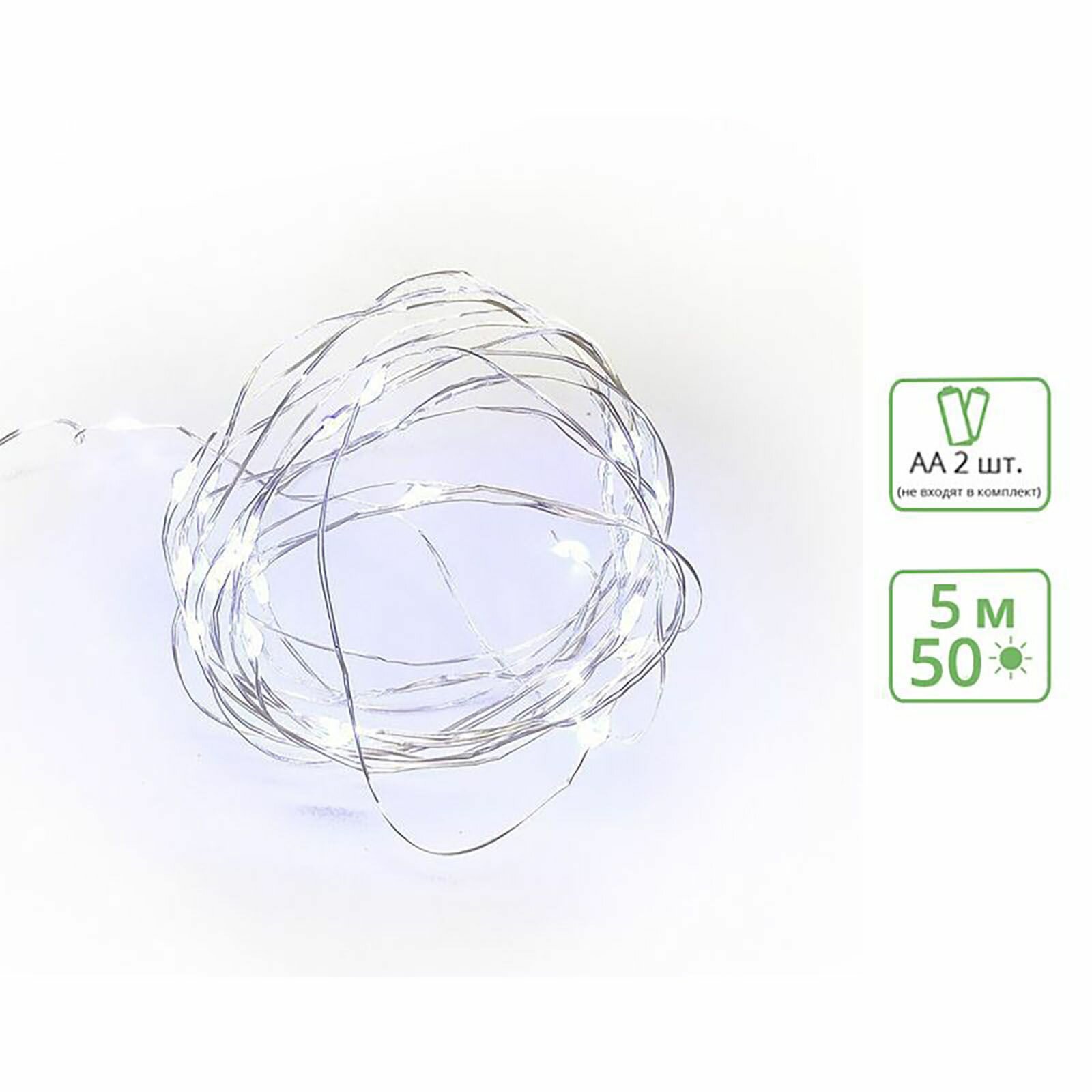 Купить Светодиодная гирлянда "Роса" на батарейках / 50 белых led / 5 м / 1 шт.