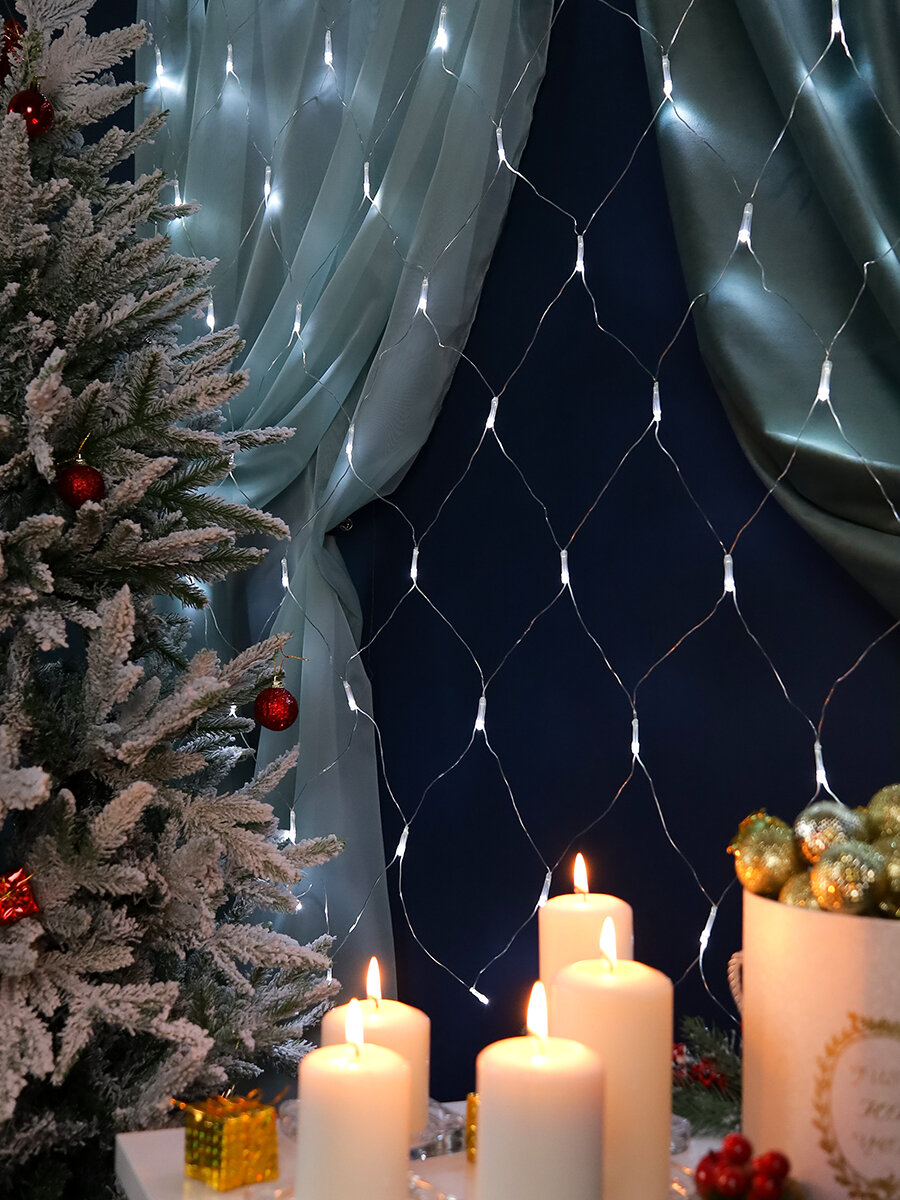 Прозрачная гирлянда "Сетка" 3х2 м, холодный белый свет, 192 лампы, 8 режимов. Артикул НУ-3637 интересное: