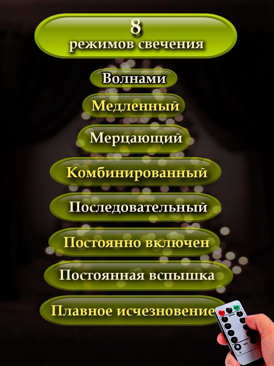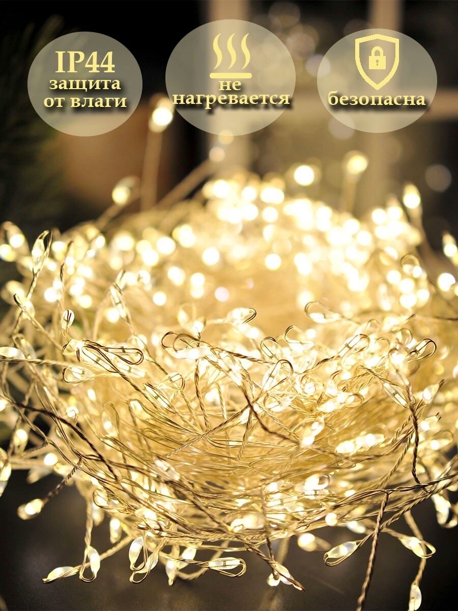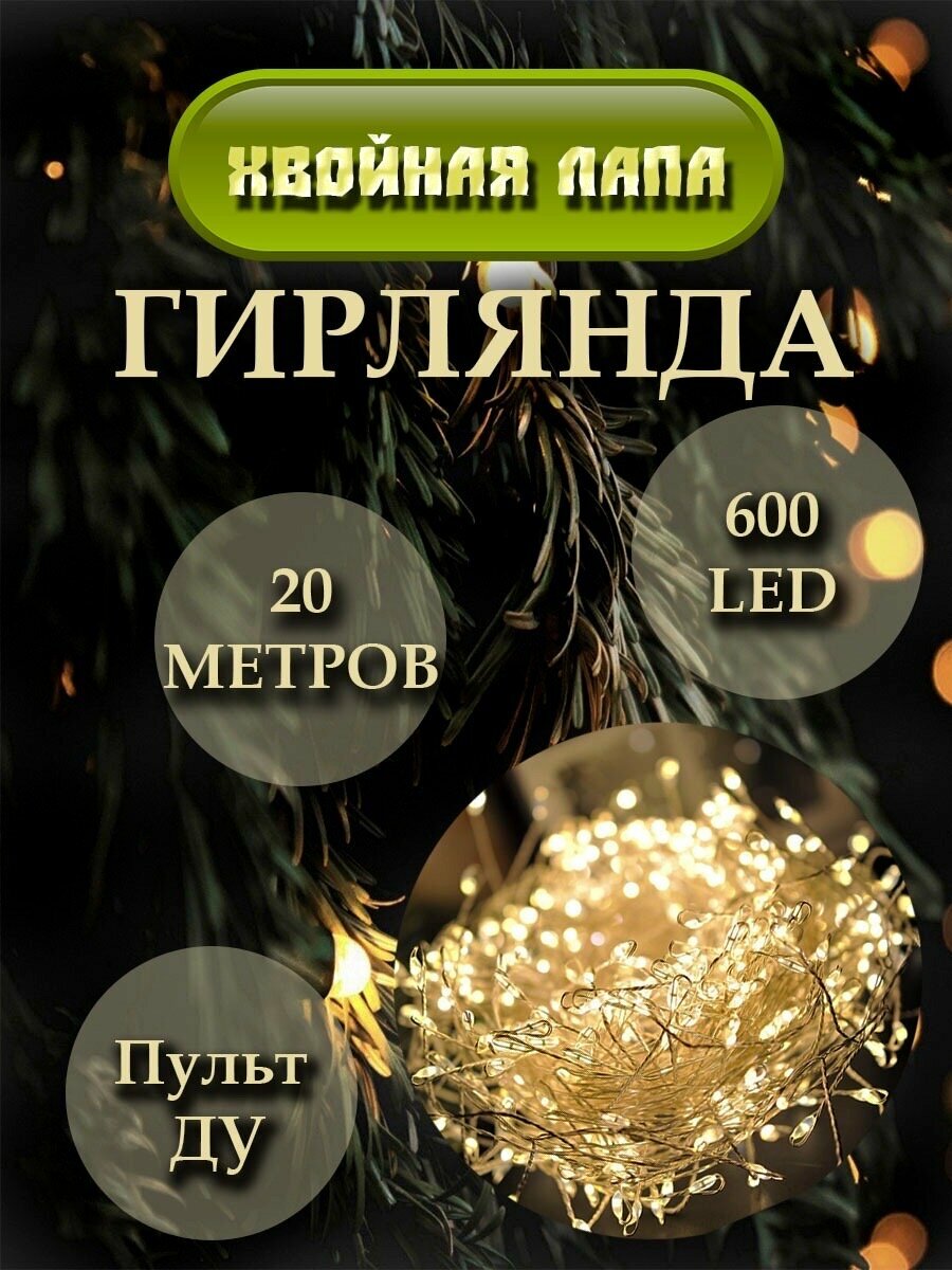 Гирлянда мишура 20 метров 8 режимов свечения с пультом / светодиодная бахрома / теплый свет. интересное: