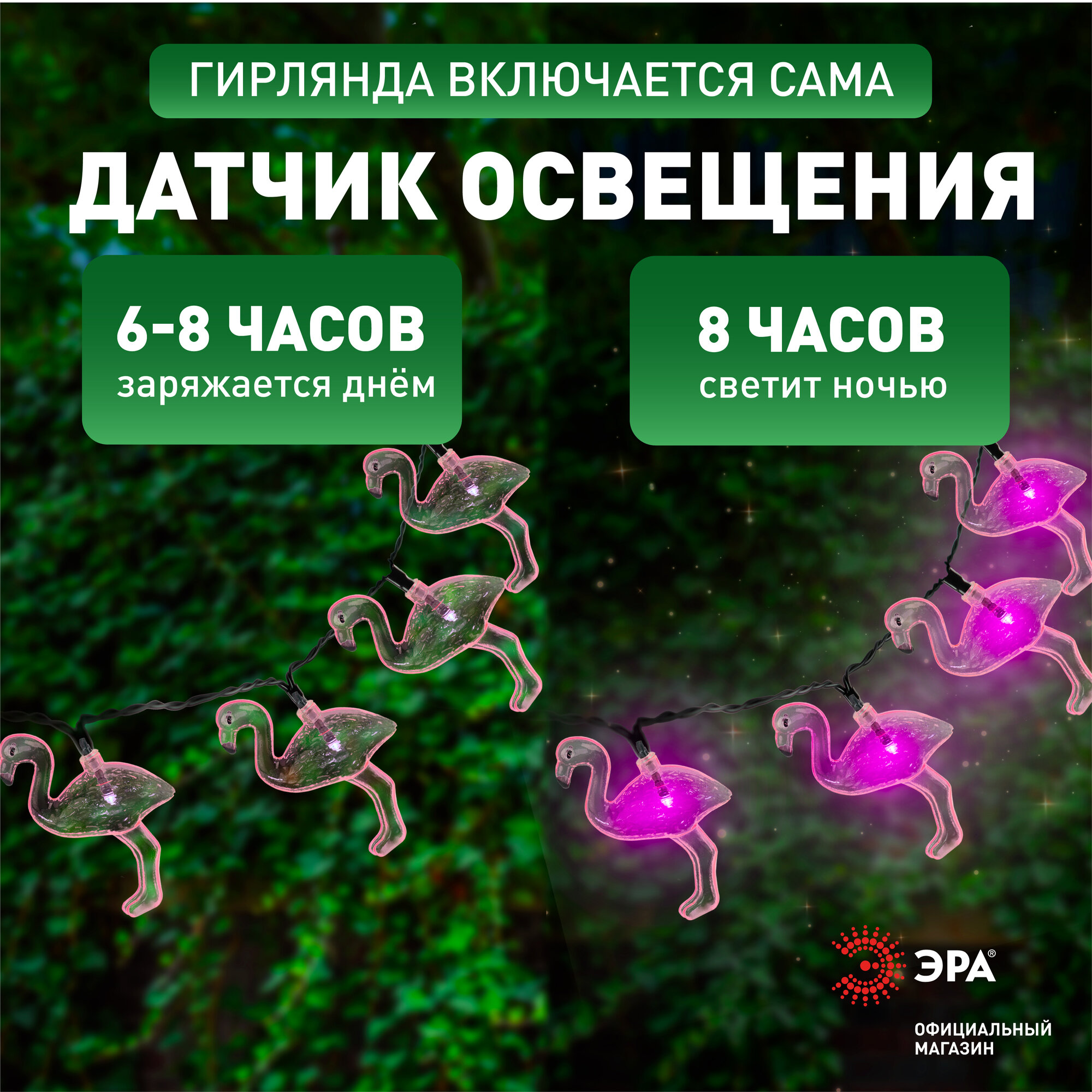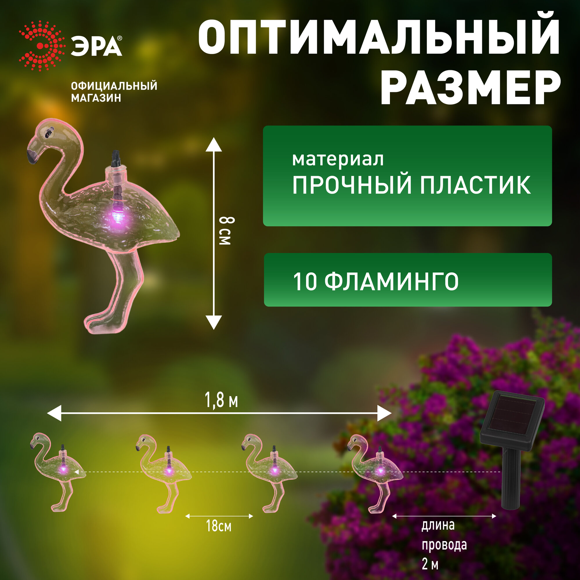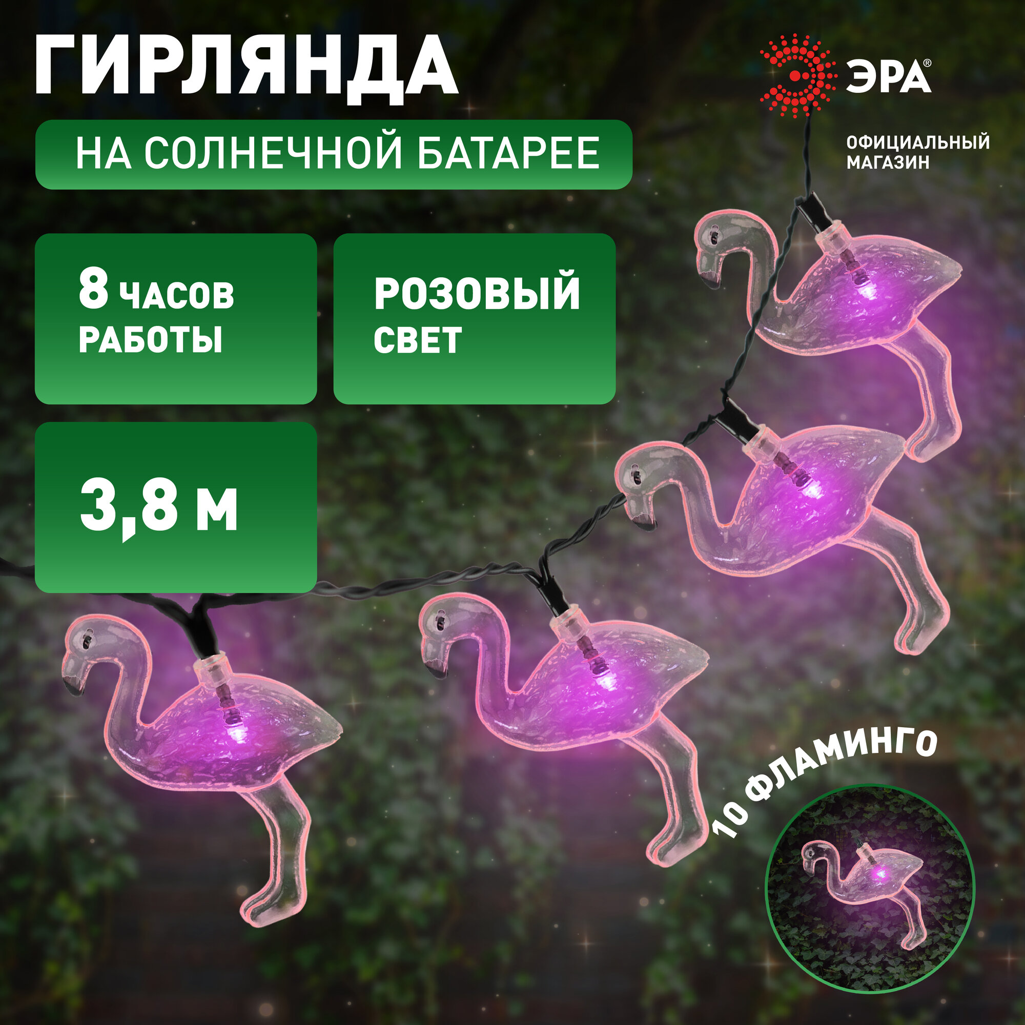 Гирлянда светодиодная уличная ретро ЭРА ERADG012-07 Фламинго на солнечной батарее 3,8 м, 10 LED интересное: