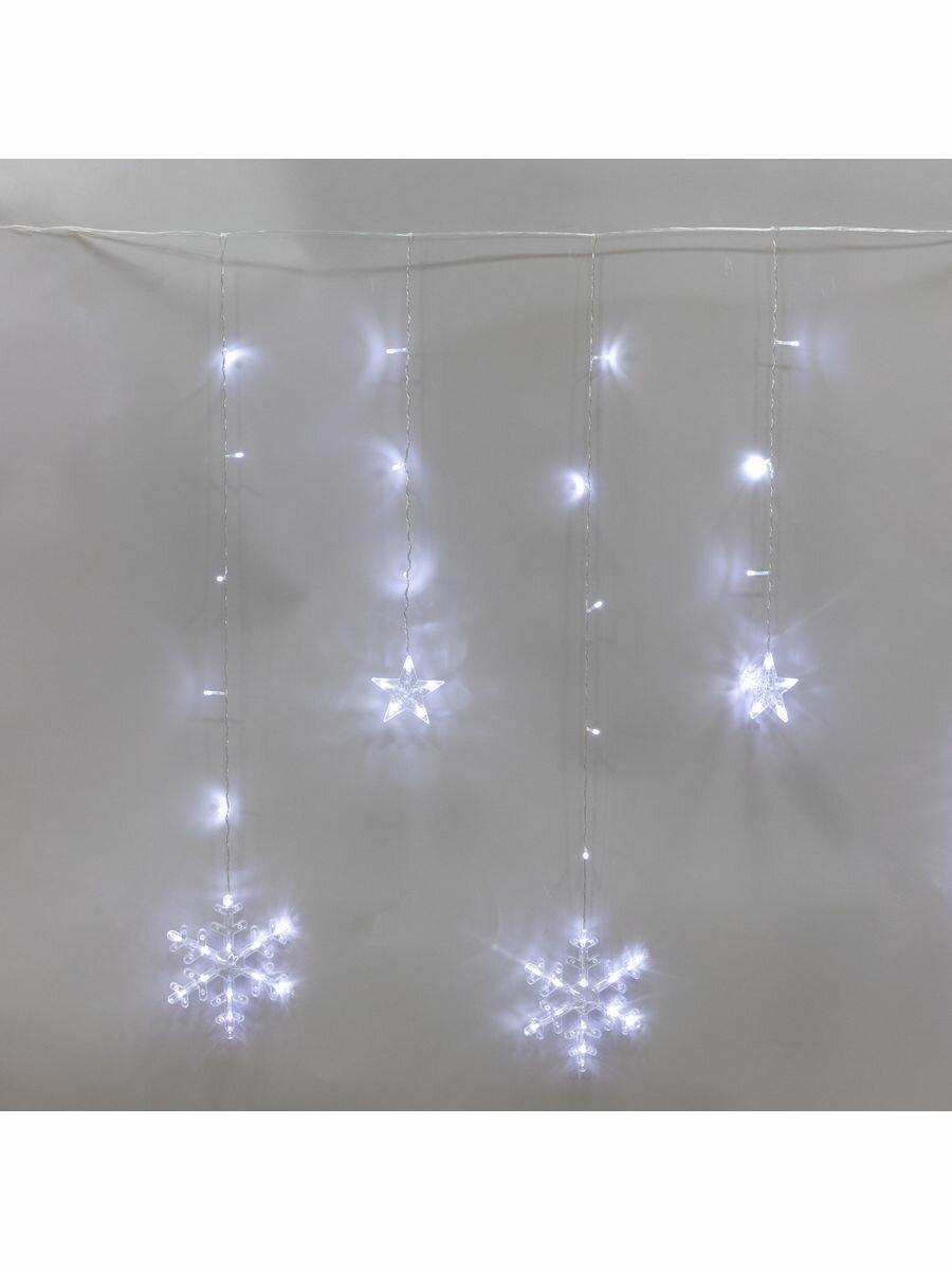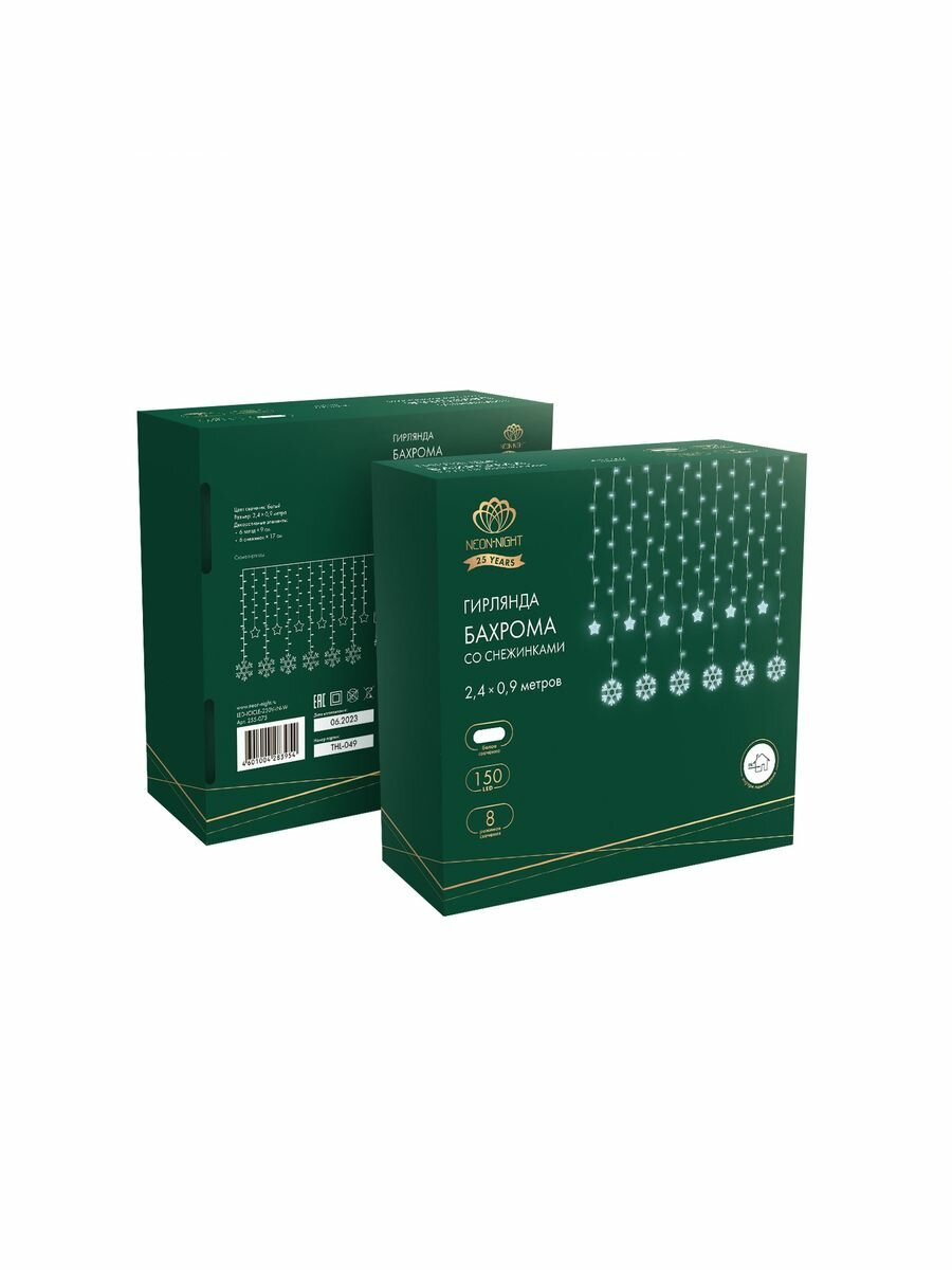 Купить Гирлянда светодиодная «Бахрома» со снежинками 2.4х0.9м 150LED бел. 7.5Вт 230В IP20 с контроллером 8 режимов Neon-Night 255-075