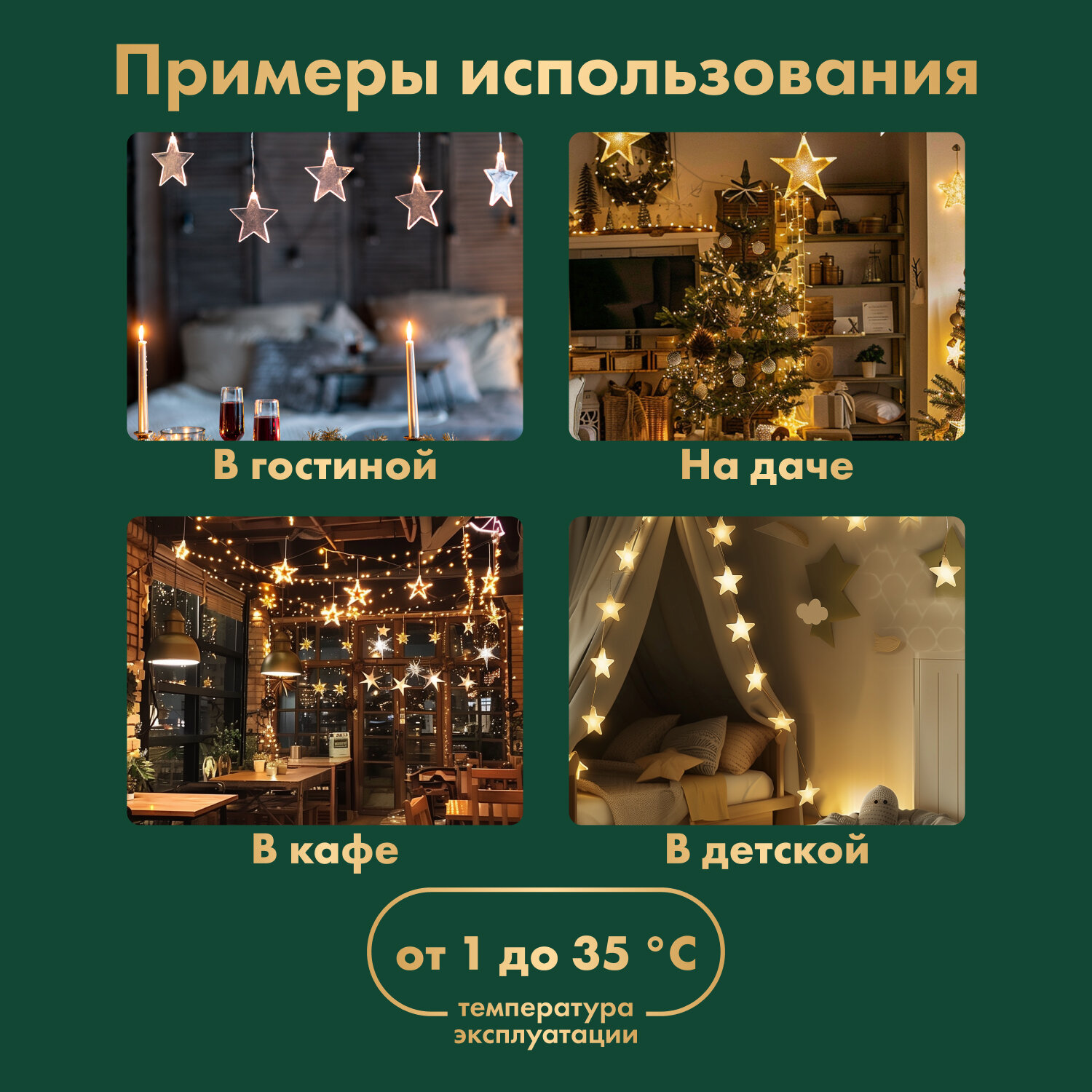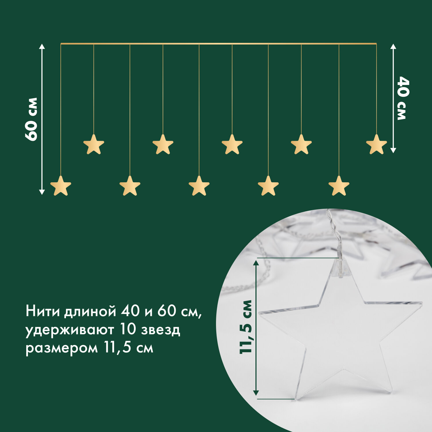 Светодиодная гирлянда-бахрома Neon-Night "Звезды" 1.5х0.6 м, теплое белое свечение 10 LED интересное: