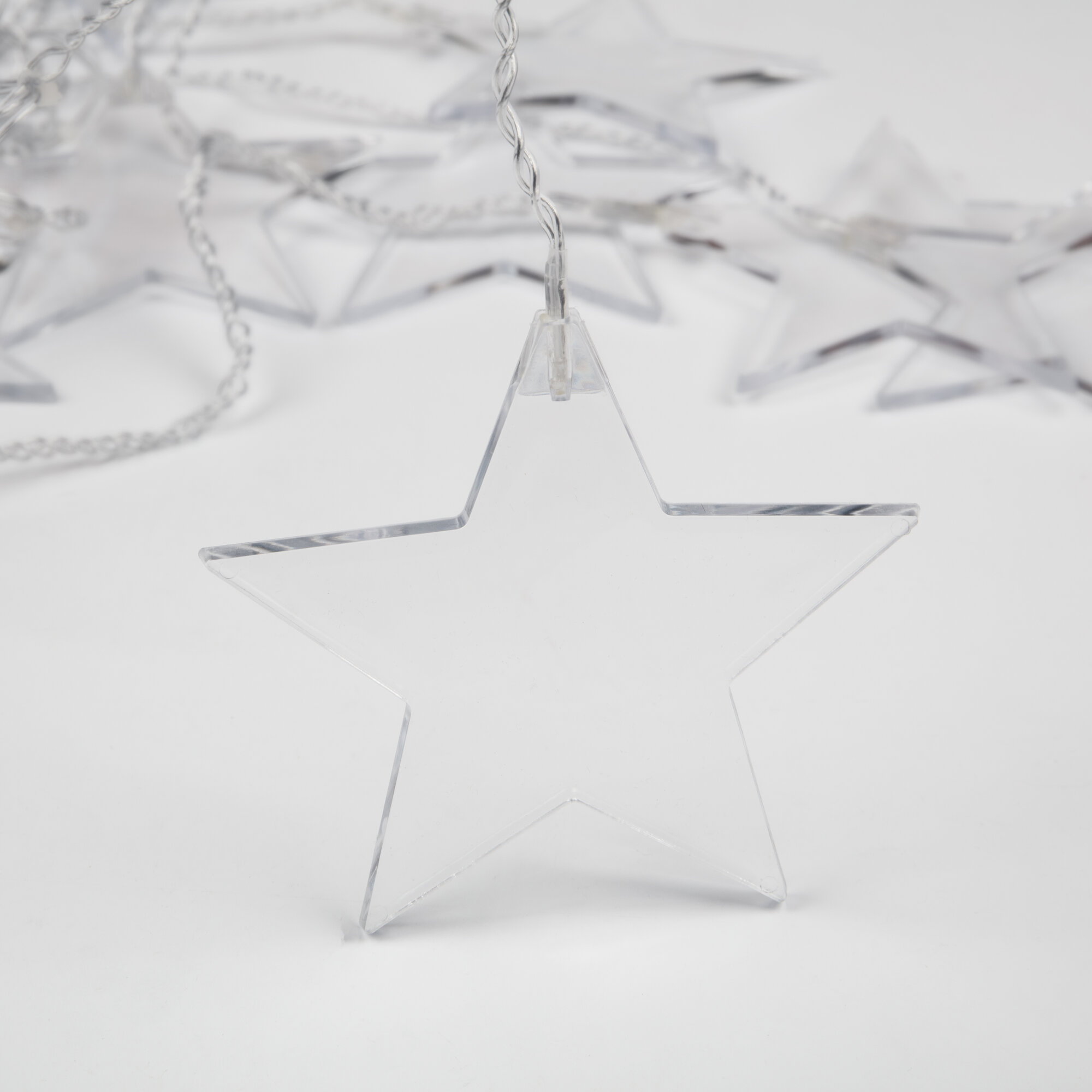 Гирлянда "Нить" 4 м с насадками "Звёздочка", IP20, прозрачная нить, 20 LED, свечение тёплое белое, 8 режимов, 220 В