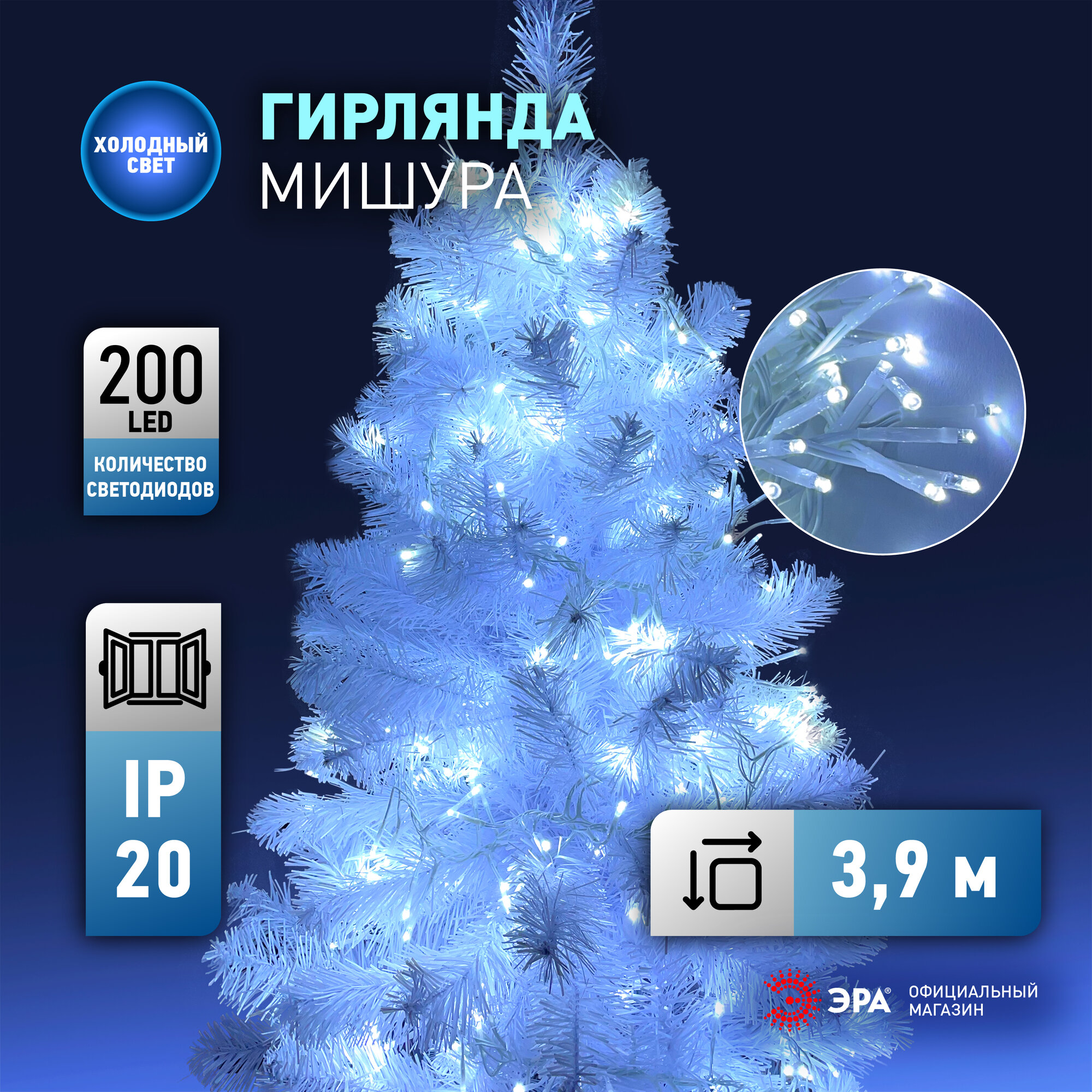 Гирлянда светодиодная нить мишура ENIN-WC ЭРА холодный свет от сети 3,9 м, 200 LED интересное: