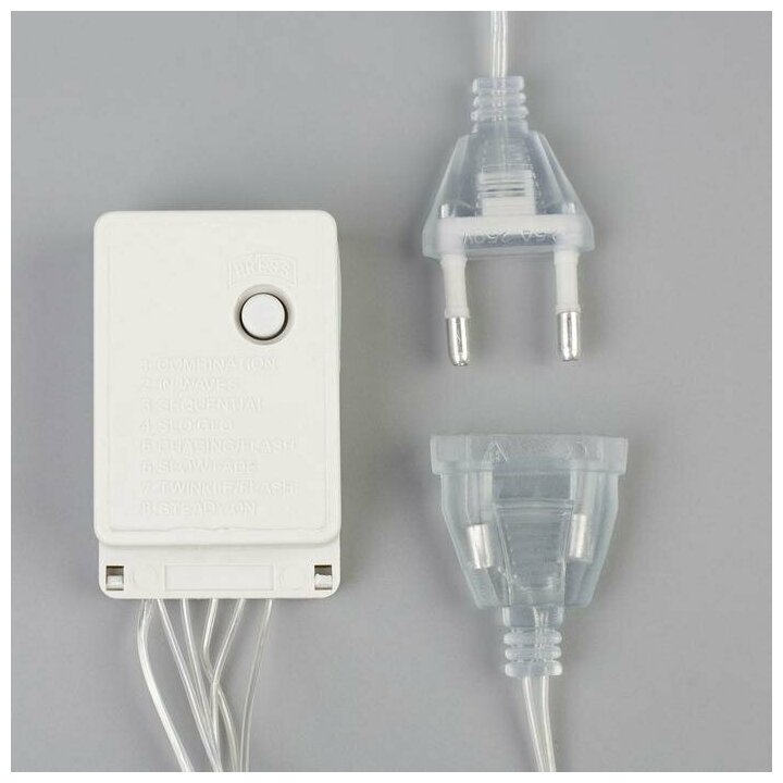 Гирлянда «Занавес» 3 × 1.4 м с насадками «Перья», IP20, прозрачная нить, 80 LED, свечение белое, 8 режимов, 220 В