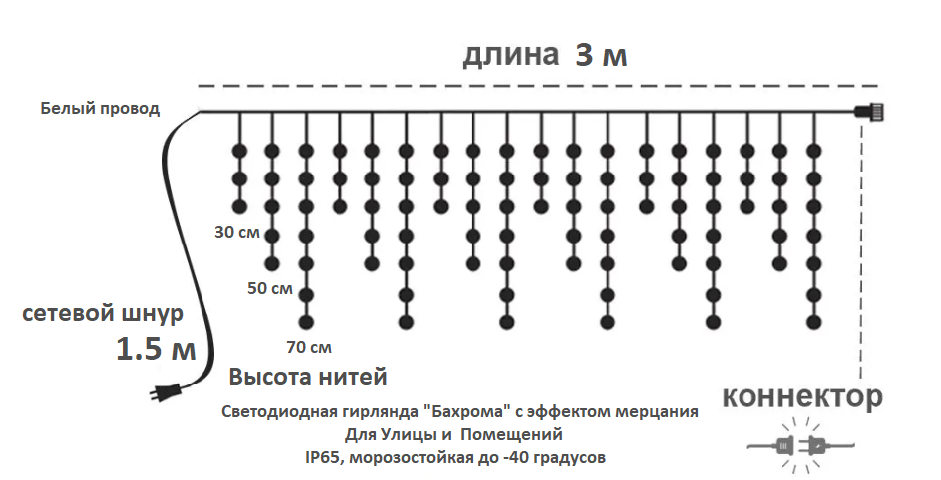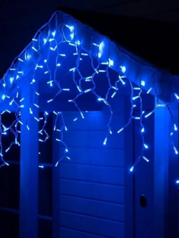 Светодиодная гирлянда бахрома уличная 3х0.7 м, Premium LED, синяя с мерцанием, на белом проводе интересное: