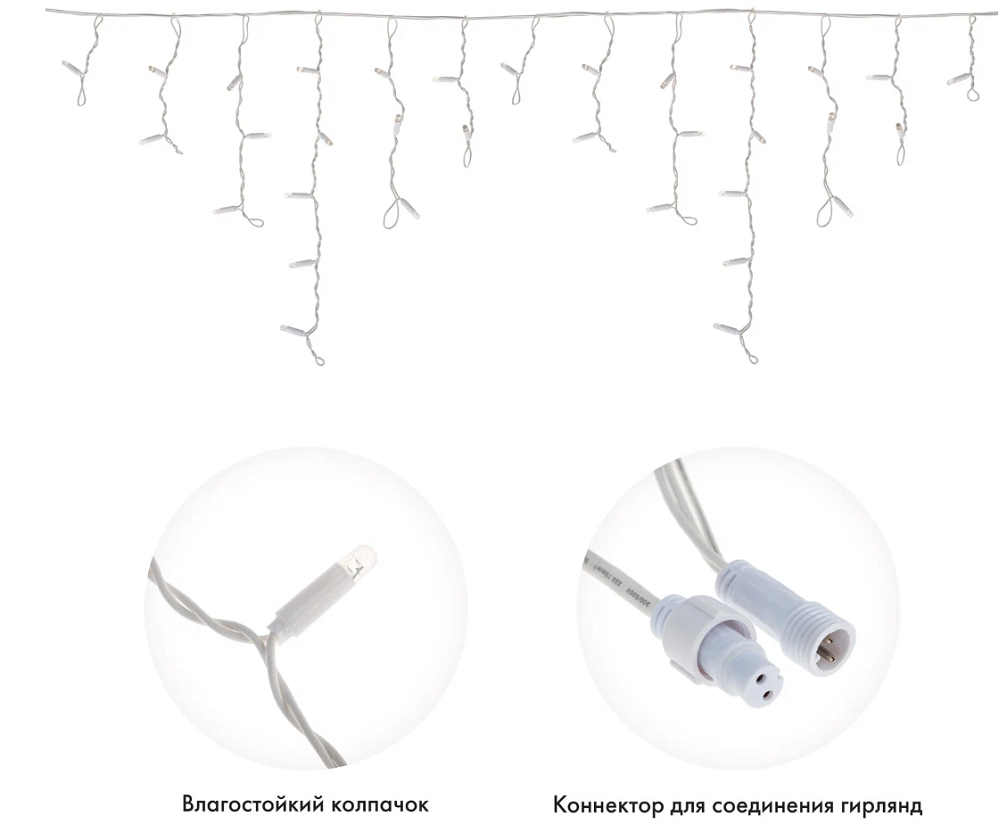 Светодиодная гирлянда бахрома уличная 3х0.7 м, Premium LED, холодная с мерцанием, на белом проводе