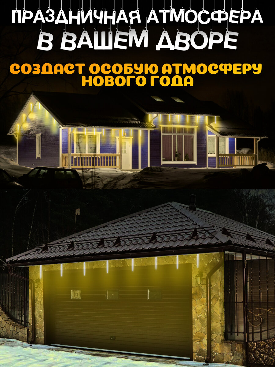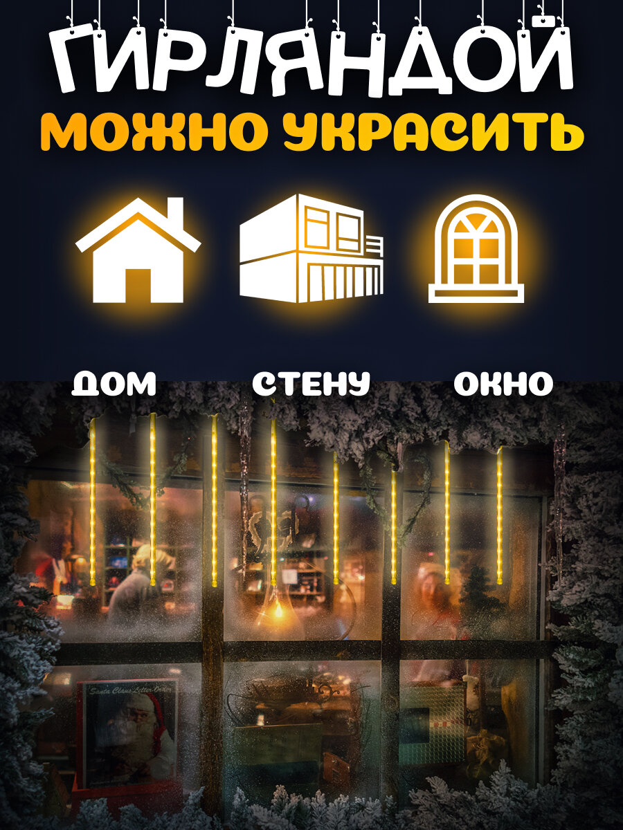 MiLED Гирлянда с насадками "Метеоритный дождь" 8шт. 30см, теплый белый свет, 220В, 3м работает от сети. Артикул ГН-0014 интересное: