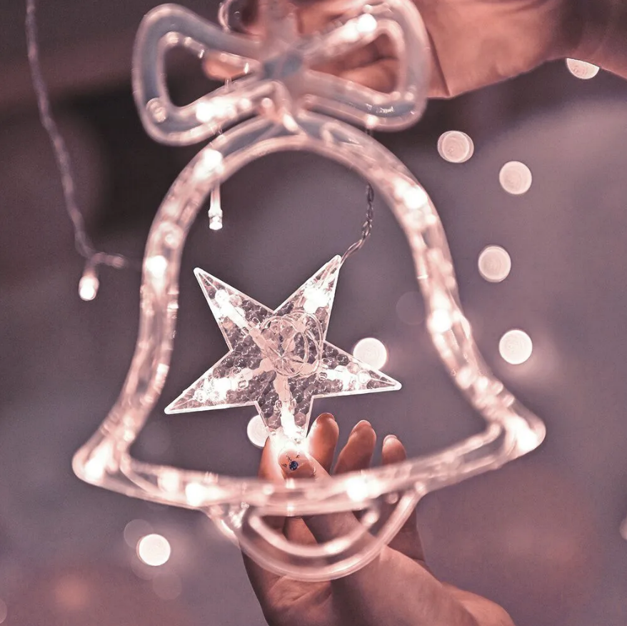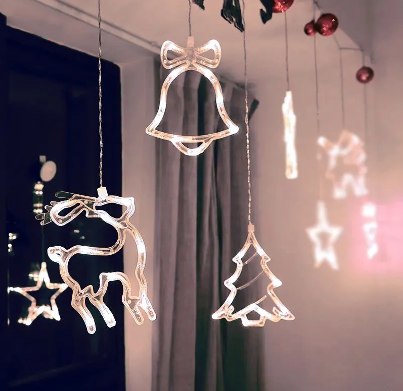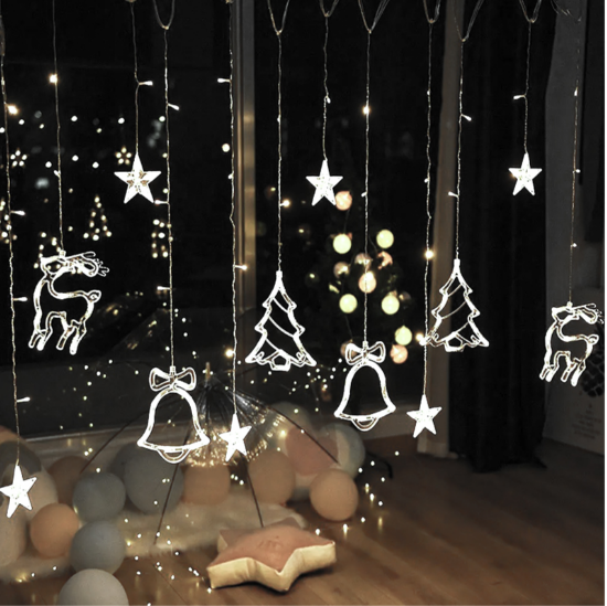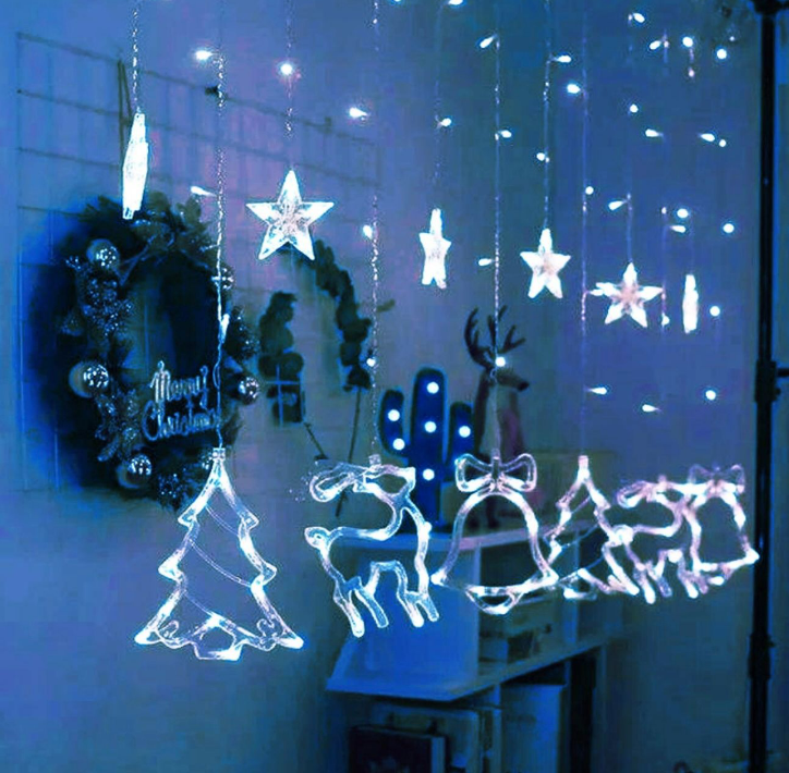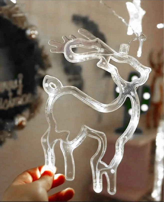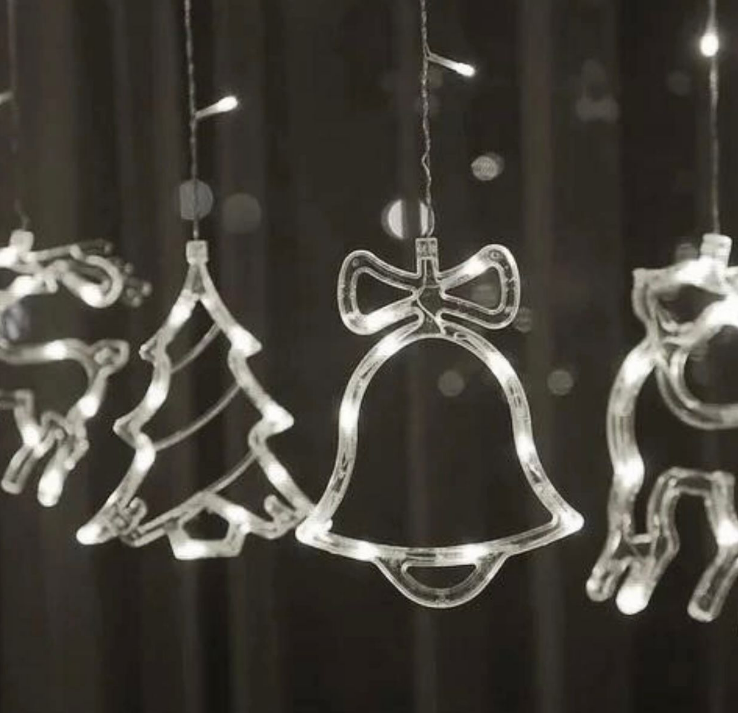 Гирлянда Бахрома, занавес "Олень, елка, колокольчик" 3 x 0.8м, питание от сети, белый (холодный) свет интересное: