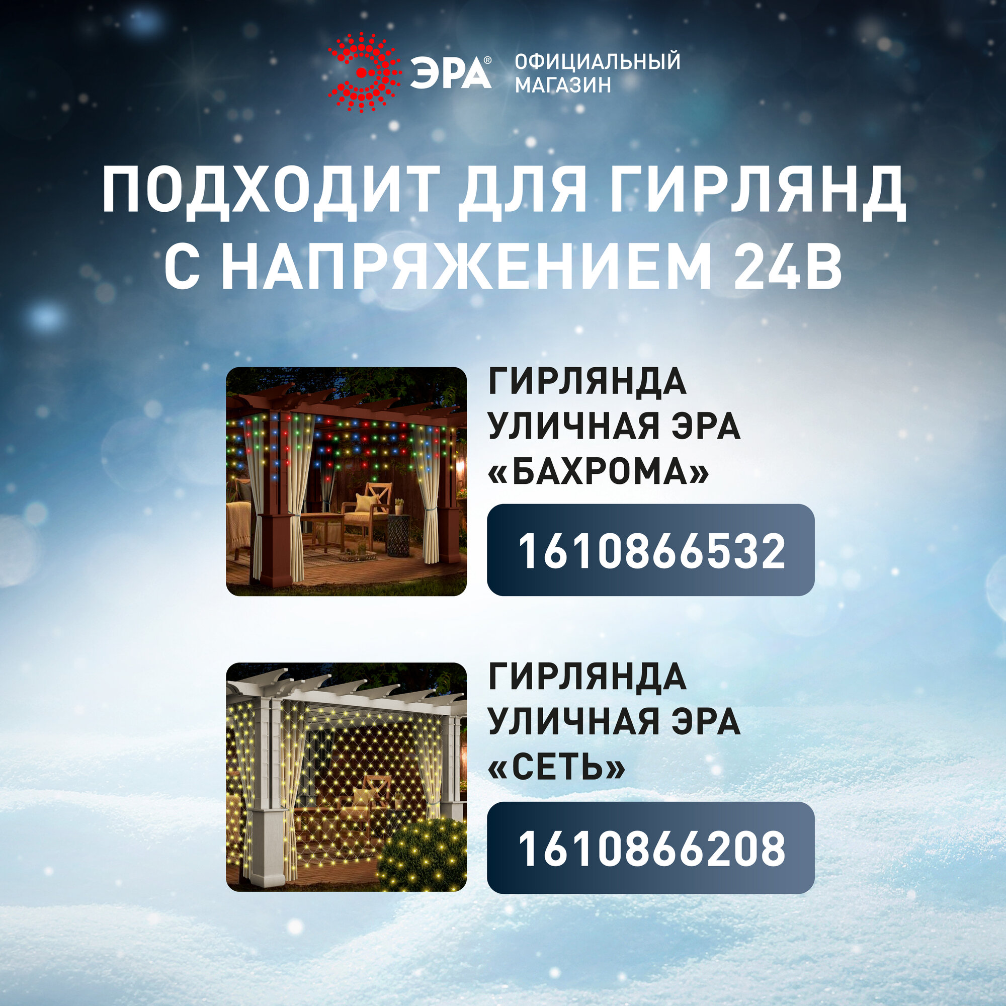 Трансформатор для подключения низковольтных гирлянд ЭРА 220В - 24В IP44 10 м интересное: