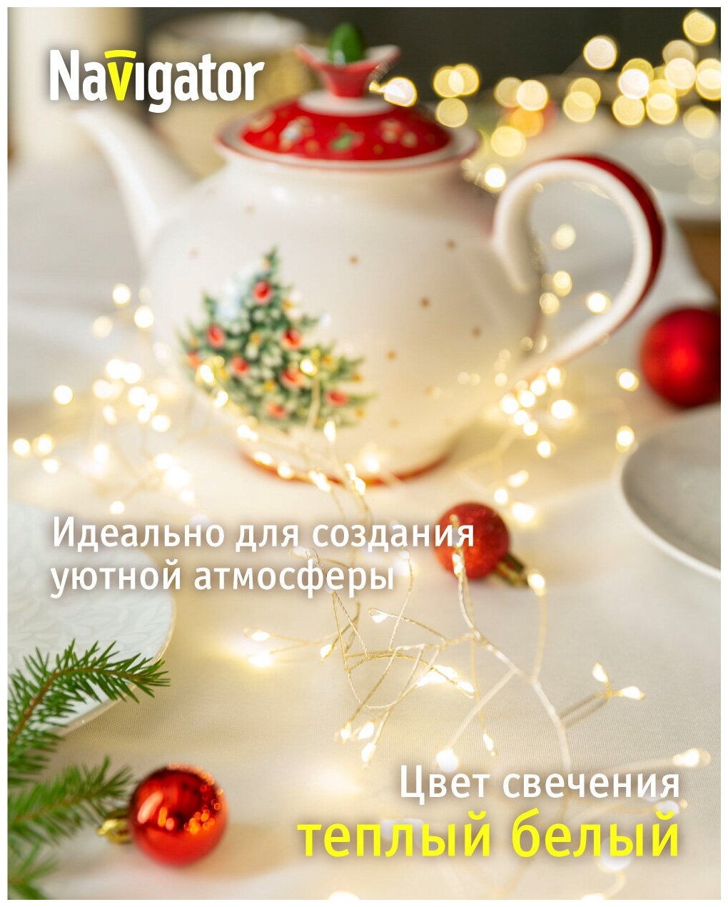 Гирлянда с микросветодиодами «Фейерверк» Navigator 14 207, 1.4 м, теплый белый, на батарейках интересное: