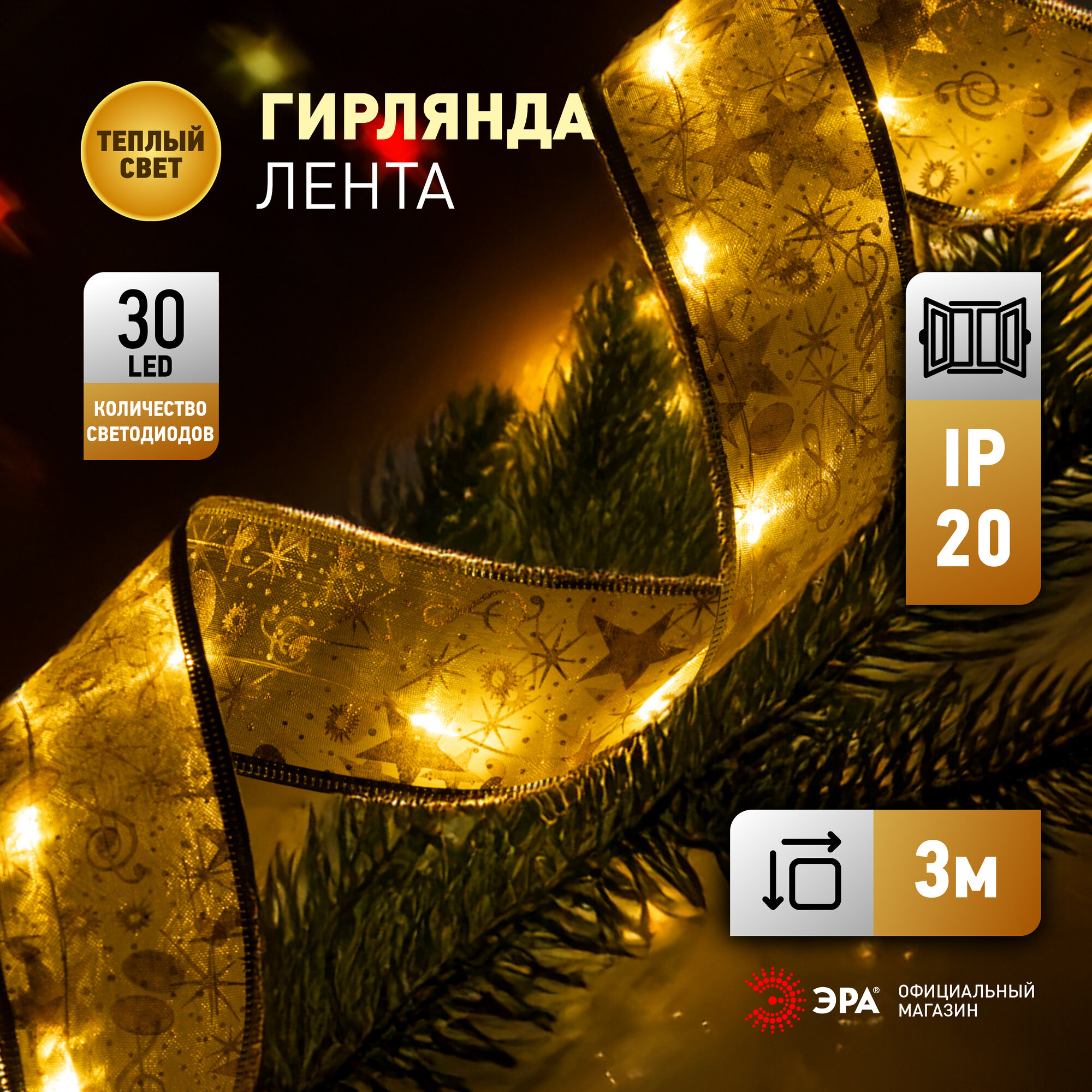 Купить Светодиодная новогодняя гирлянда ЭРА ENIN-30W нить Лента декоративная теплый свет 3 м 30 microled IP20
