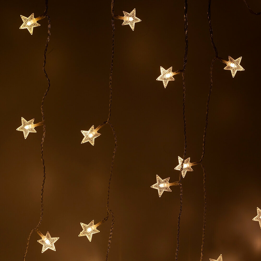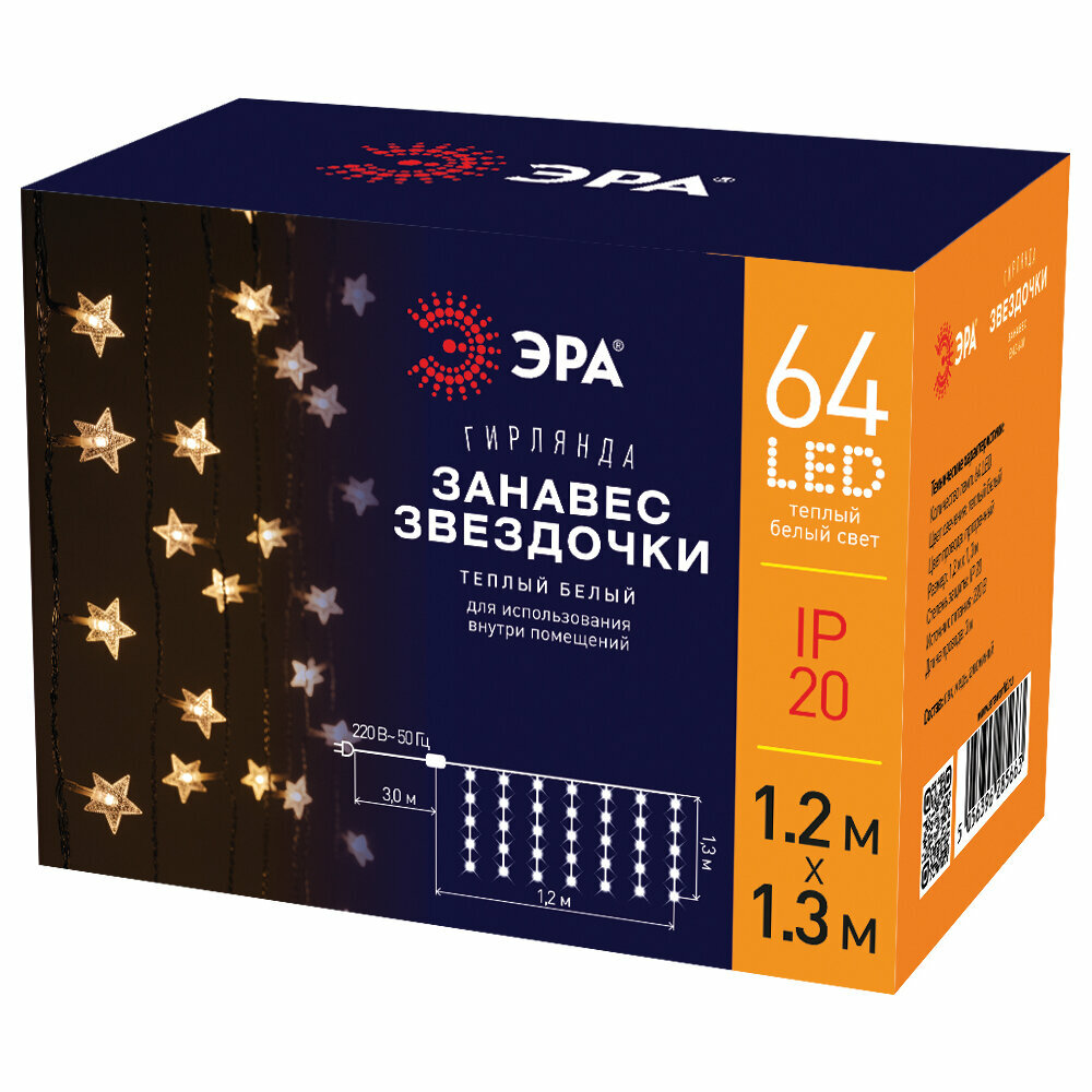 Купить Гирлянда светодиодная занавес звезды ENIZ-64W ЭРА теплый свет от сети 1,2 м х 1,3 м, 64 LED