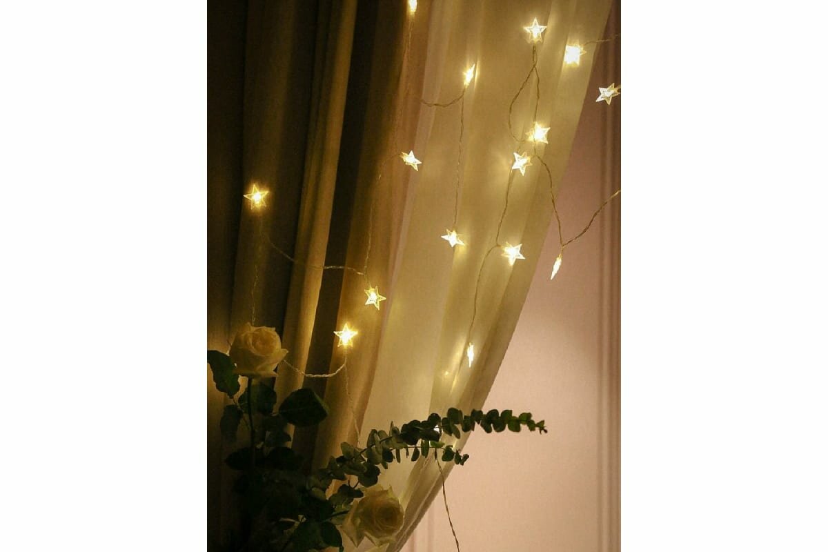 Гирлянда "Нить" 4 м с насадками "Звёздочка", IP20, прозрачная нить, 20 LED, свечение тёплое белое, 8 режимов, 220 В