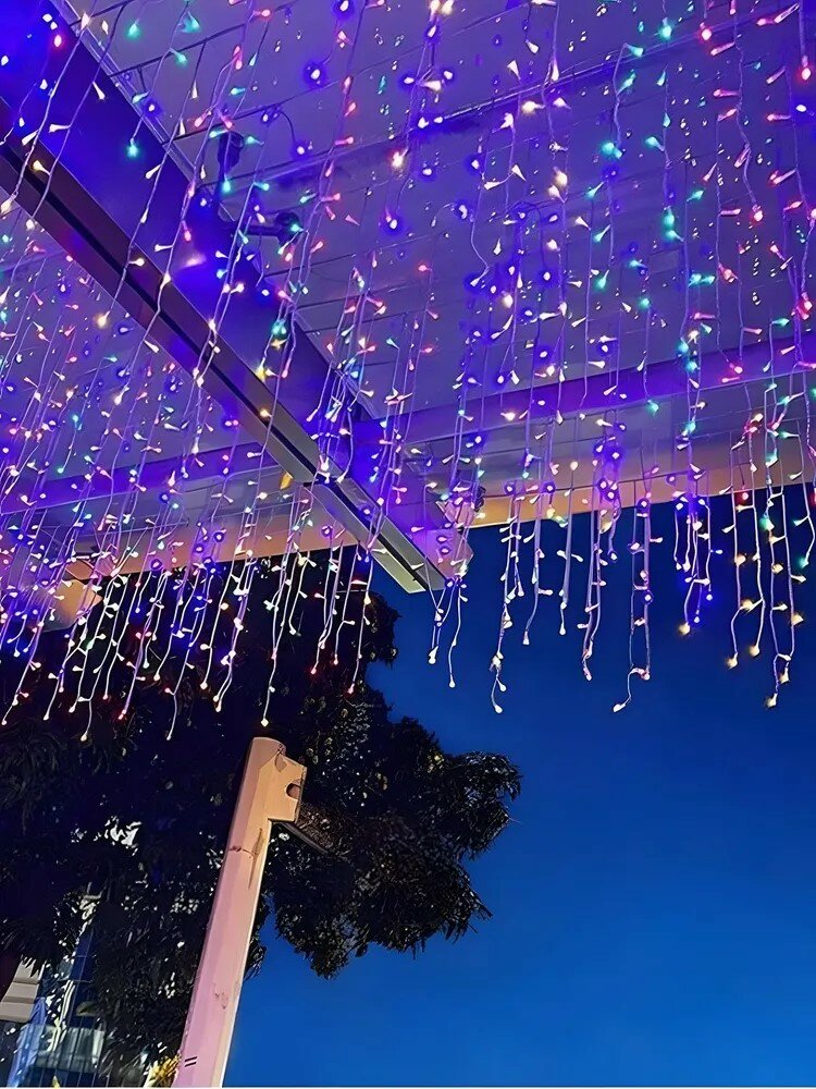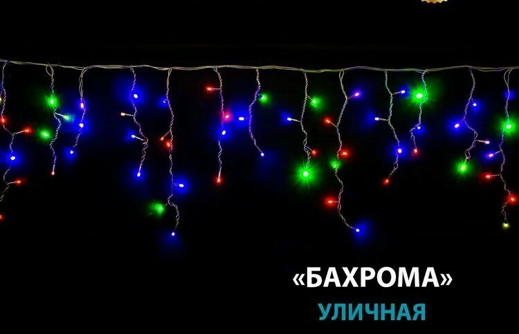Бахрома уличная, гирлянда светодиодная, электрогирлянда морозостойкая, 33 м, разноцветный, провод белый интересное: