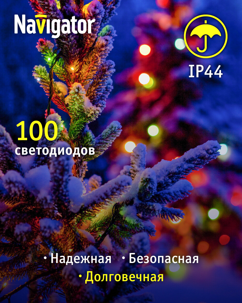 Купить Светодиодная гирлянда Нить Navigator 61 822, 9.5 м, разноцветный свет, IP44