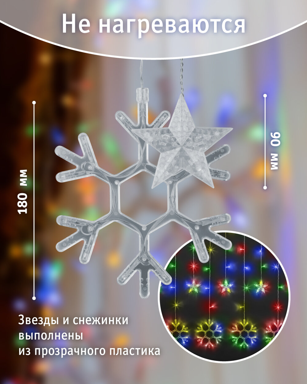 Купить Светодиодная гирлянда-бахрома «Звёзды и снежинки» Navigator 95 123, разноцветный свет, 2.5 м, IP20