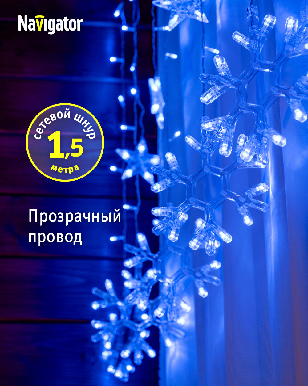 Купить Светодиодная гирлянда-бахрома «Звёзды и снежинки» Navigator 95 122, синий свет, 2.5 м, IP20
